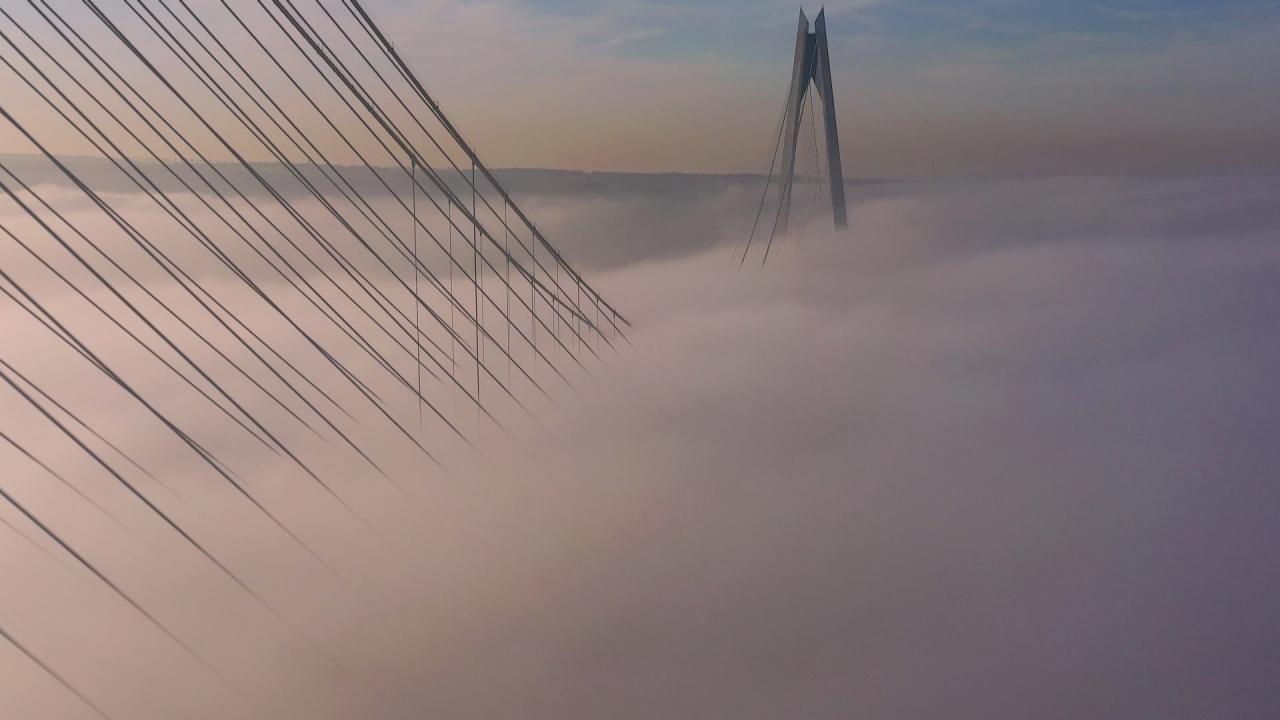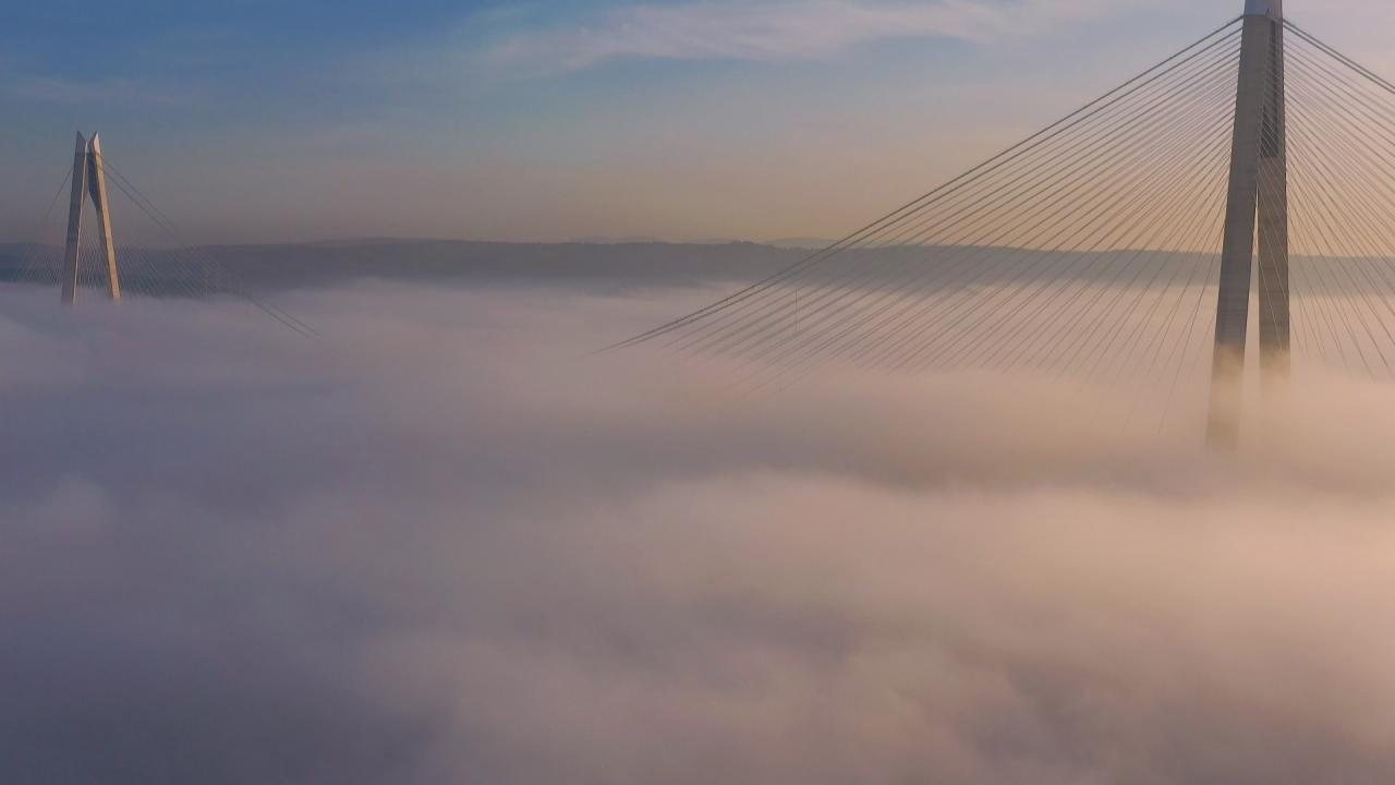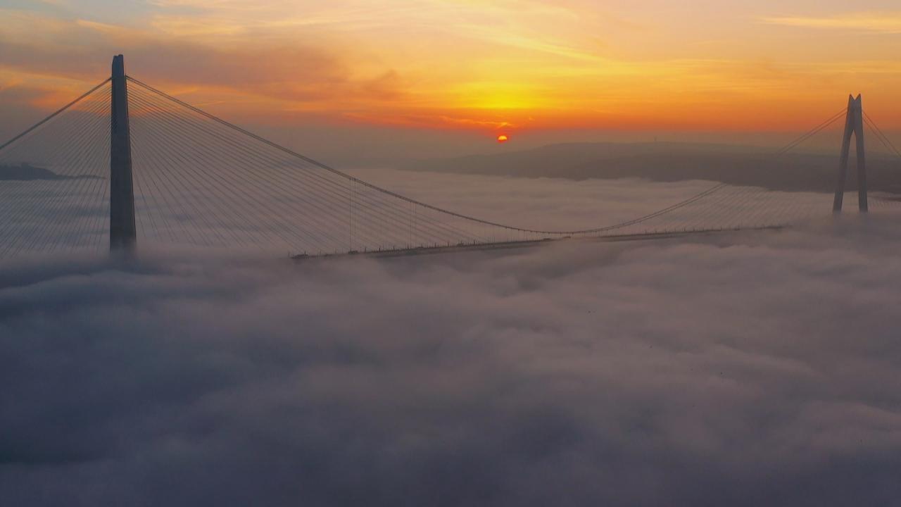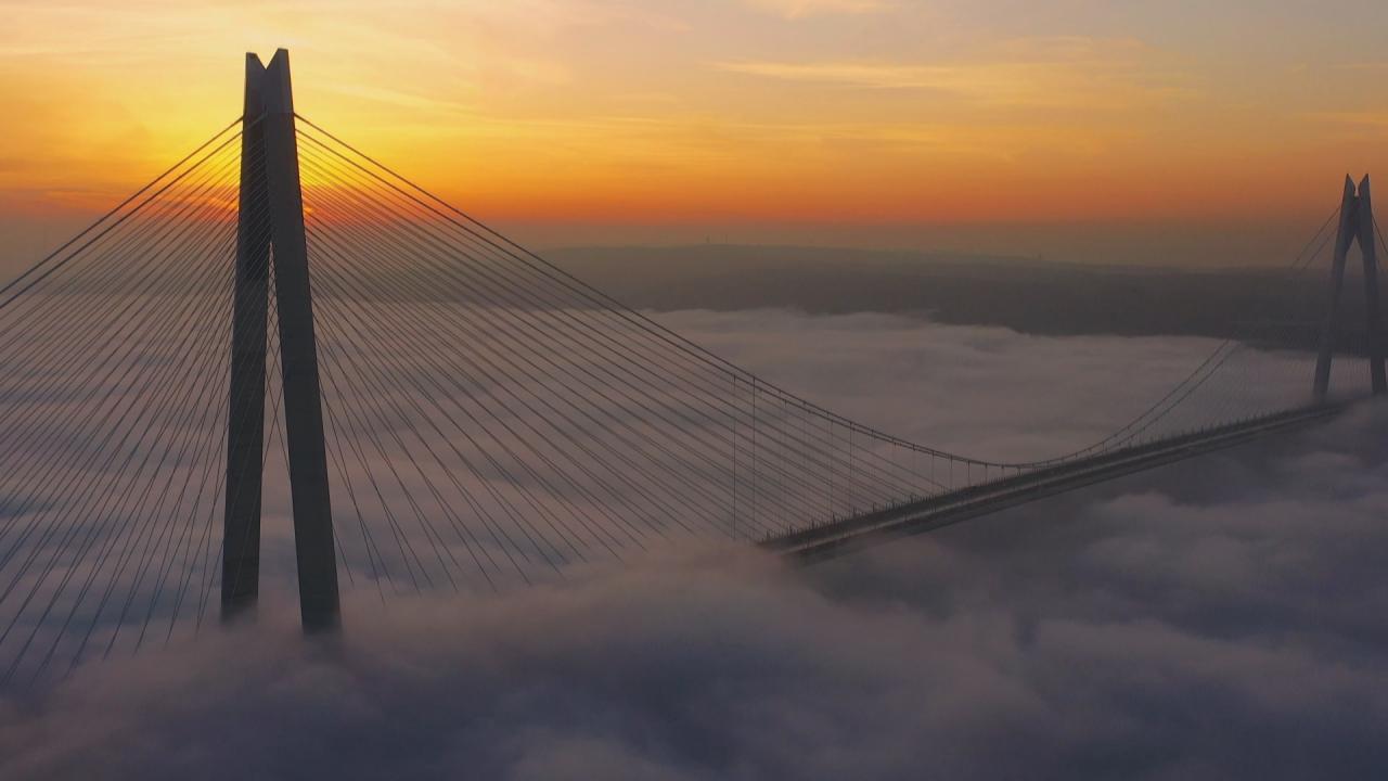 Asya ve Avrupa kıtalarını karayoluyla 3'üncü kez birbirine bağlayan Yavuz Sultan Selim Köprüsü'nü kaplayan sis bulutu, masalsı görüntüler oluşturdu. Adeta bulutların üzerinde asılın duran köprü, görenleri kendine hayran bıraktı.