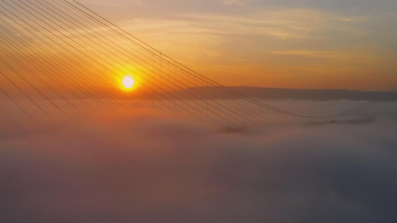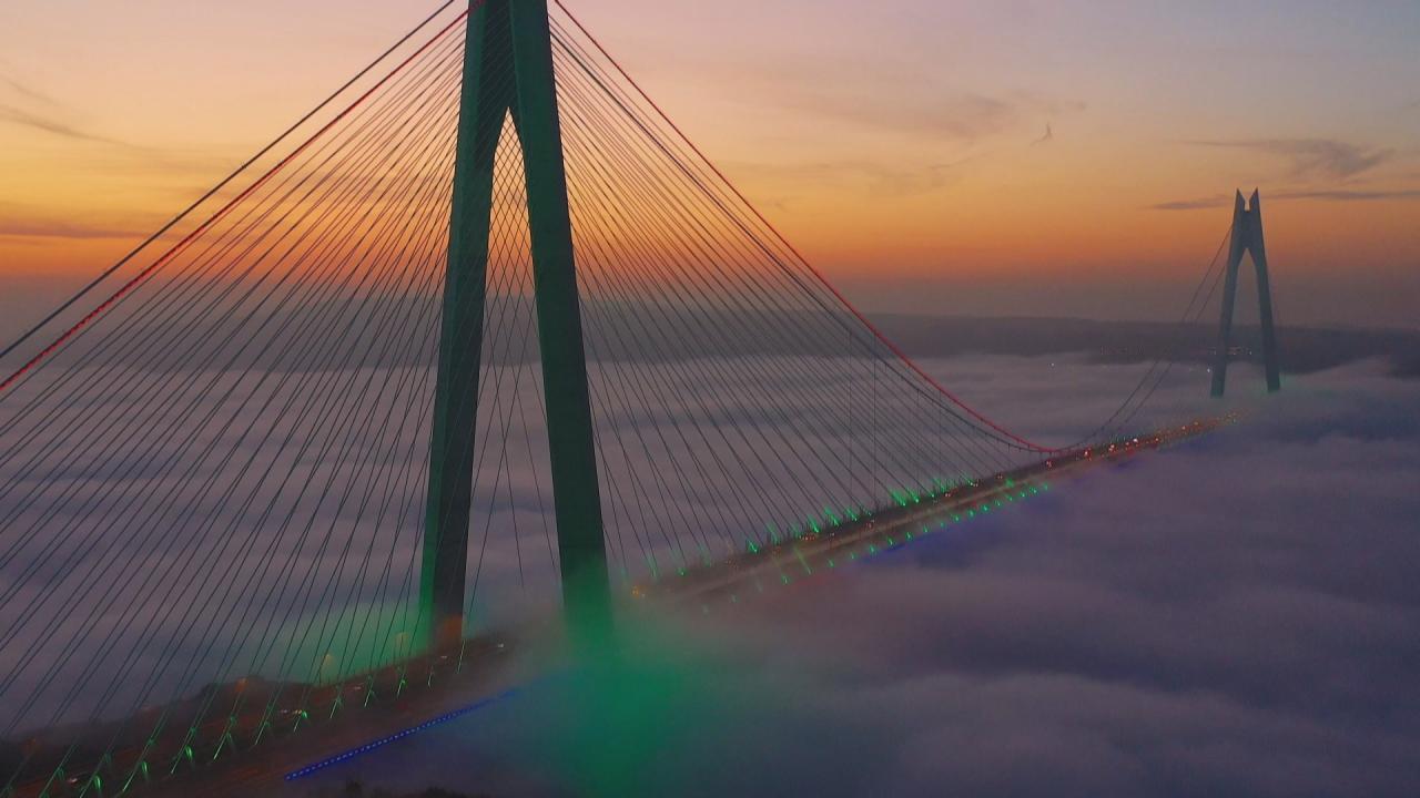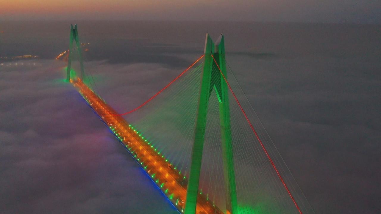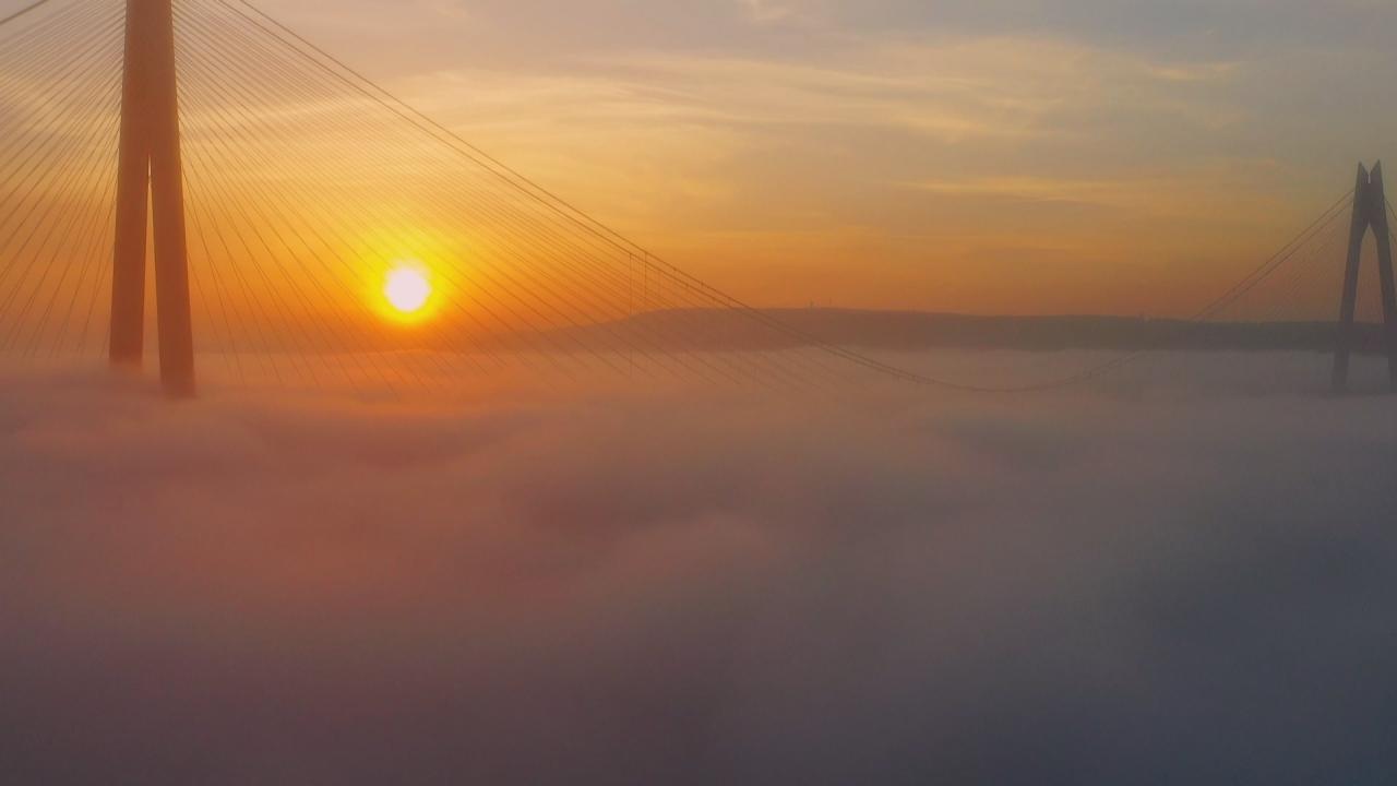 Asya ve Avrupa kıtalarını karayoluyla 3'üncü kez birbirine bağlayan Yavuz Sultan Selim Köprüsü'nü kaplayan sis bulutu, masalsı görüntüler oluşturdu. Adeta bulutların üzerinde asılın duran köprü, görenleri kendine hayran bıraktı.