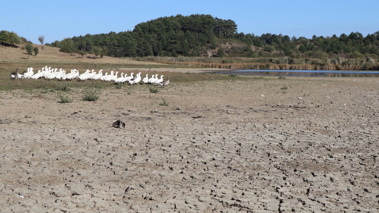 Eskiden su üzerinde yüzen kazların toprak üzerinde gezindiği, küçükbaş hayvanların da gölün kuruyan kısmında otladıkları görüldü.