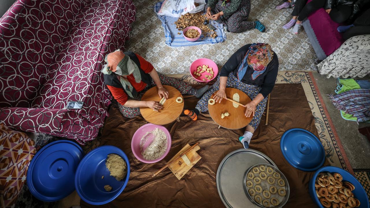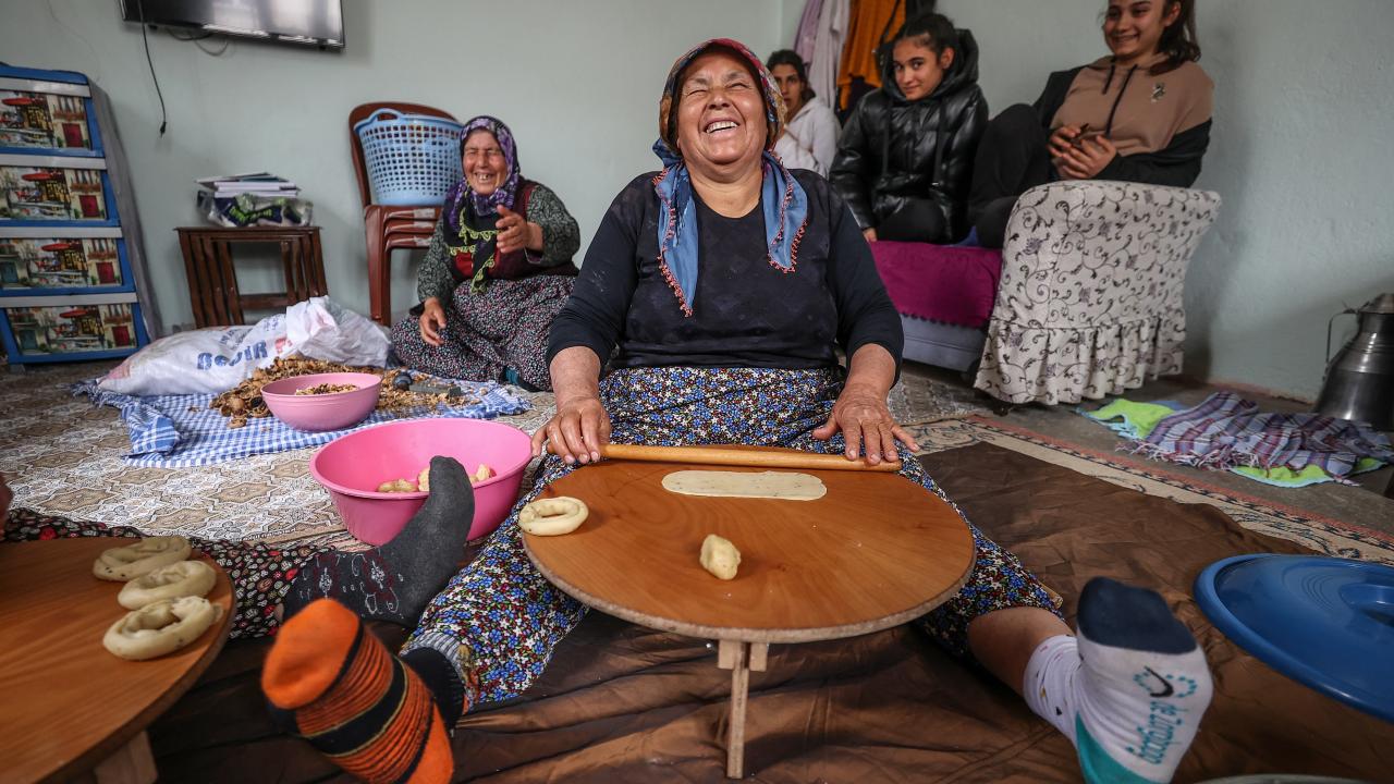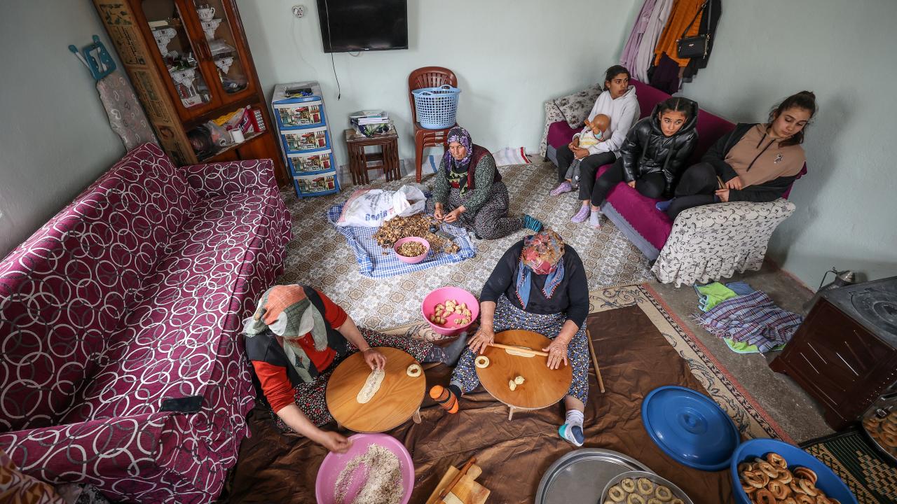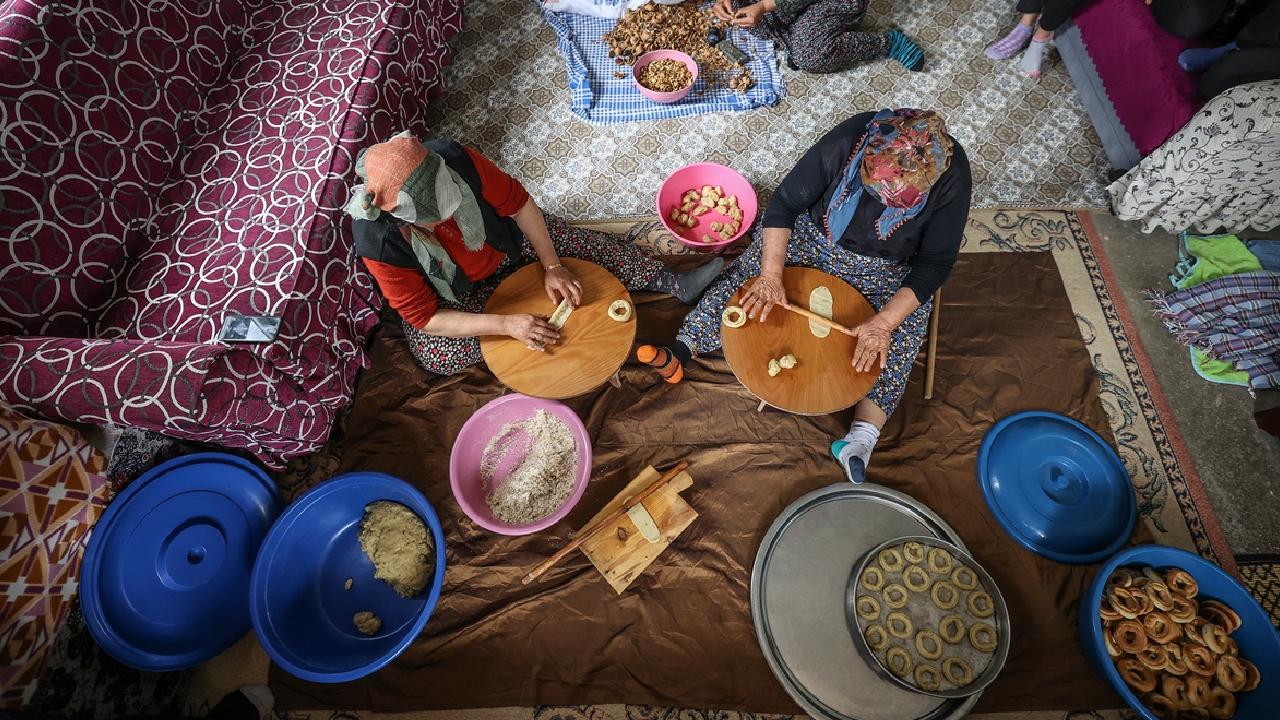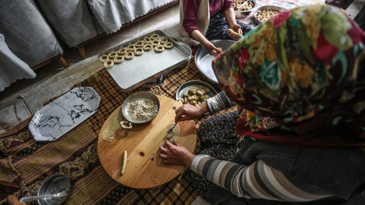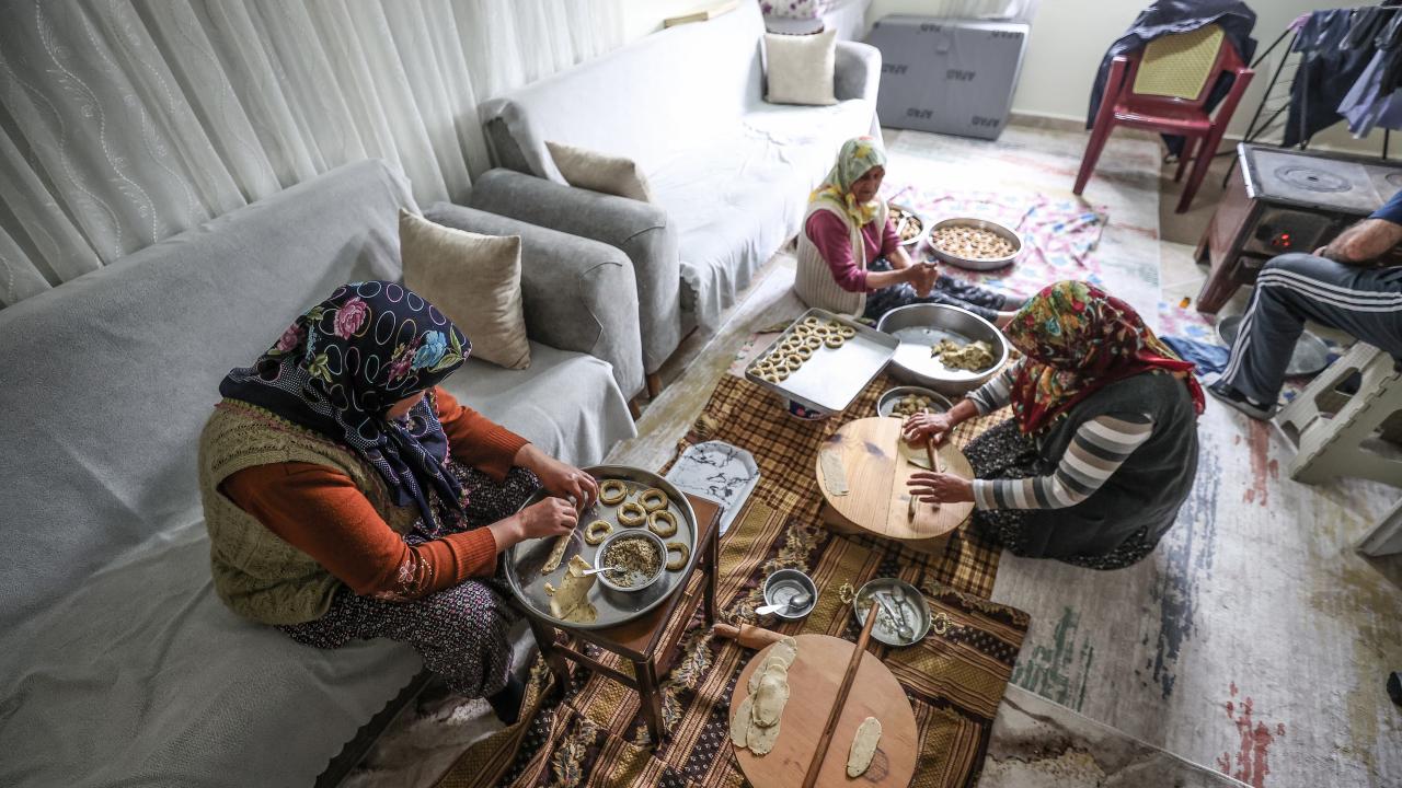 Kahramanmaraş merkezli 6 Şubat'taki depremlerden etkilenen Hatay'ın Yayladağı ilçesinde kadınlar, Ramazan Bayramı'nda misafirlerine ikram ettikleri yöresel kurabiye çeşidi 'halaka'ları hazırlamaya başladı.