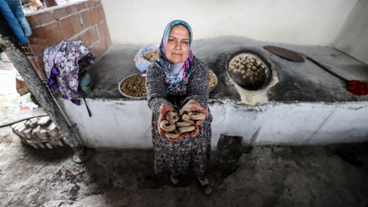 Aşağıpulluyazı sakinlerinden 58 yaşındaki Nadide Meraklan, bayramda misafirlere ikram için "halaka" adlı kurabiye çeşidi olan yöresel tatlıyı yaptıklarını söyledi.