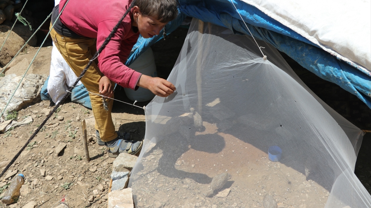 Yaz aylarını Batman'ın Sason ilçesinde Mereto Dağı'ndaki yaylada geçiren bir ailenin üç çocuğu, babaları ile birlikte hayvan otlattıkları sırada buldukları annesiz 7 kekliği çadırda yaptıkları yuvada besliyor.