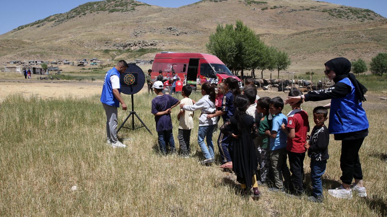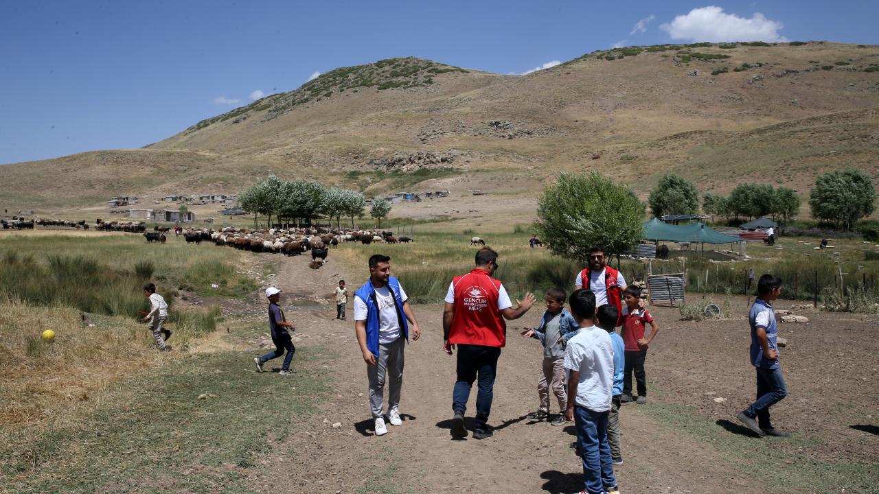 Muş'ta gençlik liderleri ve gönüllü gençler, "Heybemde Neşe Var Projesi" kapsamında yaylalara giderek düzenledikleri etkinliklerle çocukları eğlendiriyor.