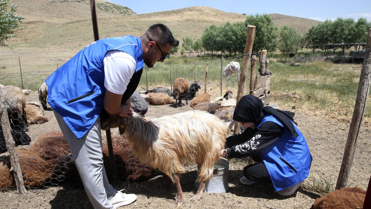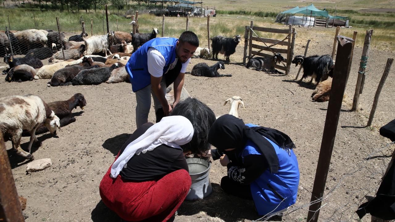 Çocuklara oyuncak dağıtan, oyunlar oynayarak yüzlerini güldüren gönüllüler, süt sağan kadınlara da yardım etti.