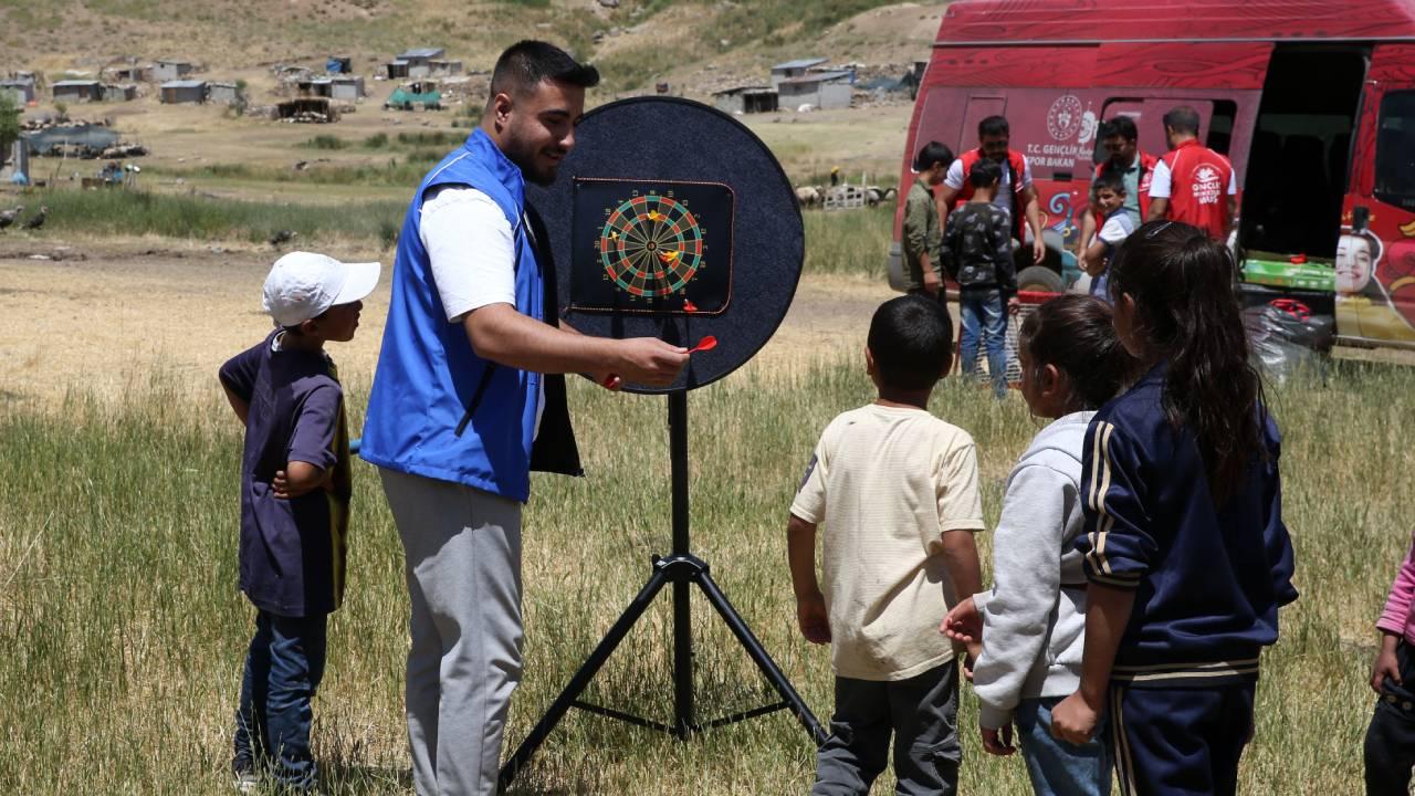 Gençlik Merkezinde görevli gençlik liderleri ile gönüllü gençler, kendilerine tahsis edilen minibüsle zorlu yolları aşarak ulaştıkları yaylalarda, yüz boyama, zeka oyunları, futbol, dart ve mendil kapmaca gibi aktivitelerle çocukların eğlenceli vakit geçirmelerini sağlıyor.