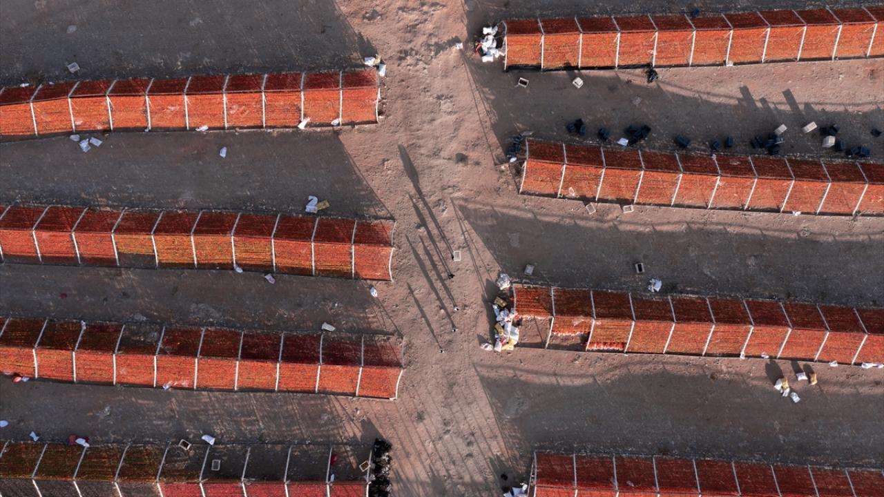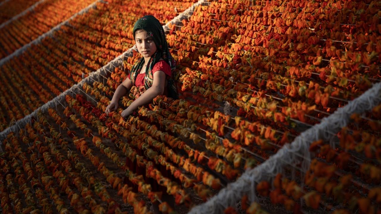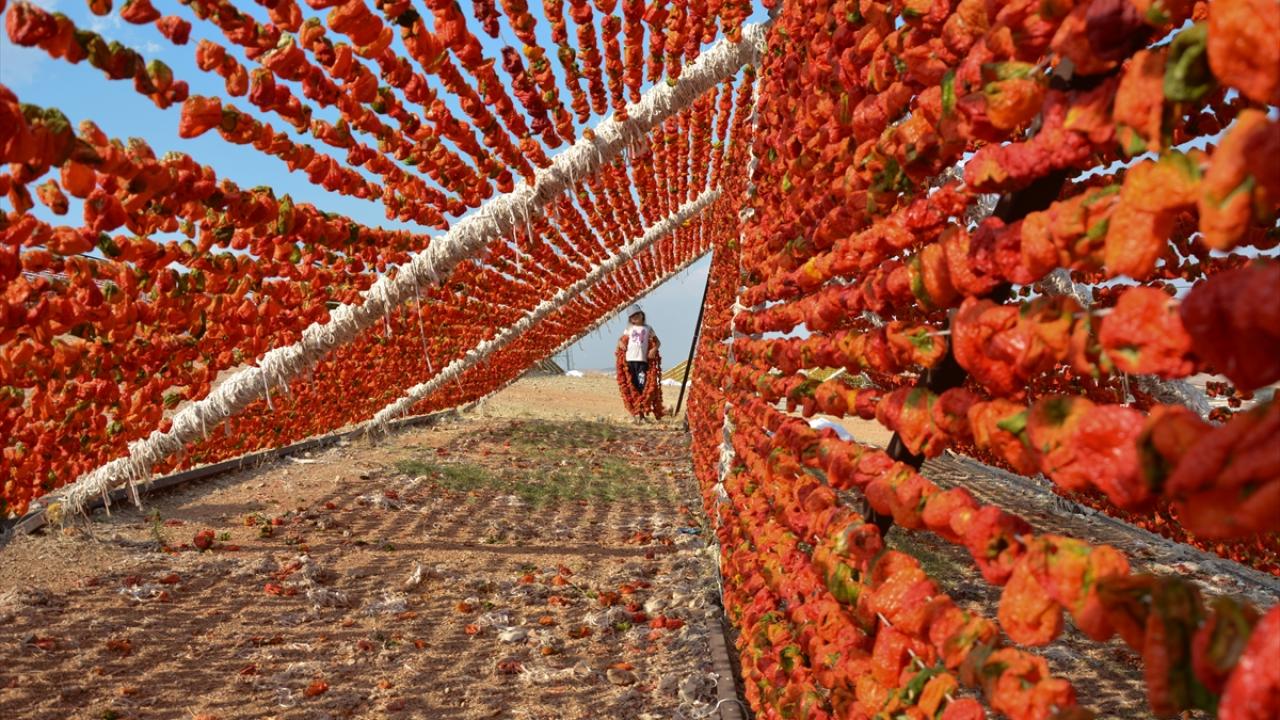 Türkiye'nin ilk gastronomi kenti Gaziantep'te kışın tüketilmek üzere biber, kabak ve patlıcan gibi sebzelerden oluşan kurutmalıklar, 40 dereceyi aşan kavurucu sıcaklarda hazırlanıyor.