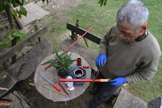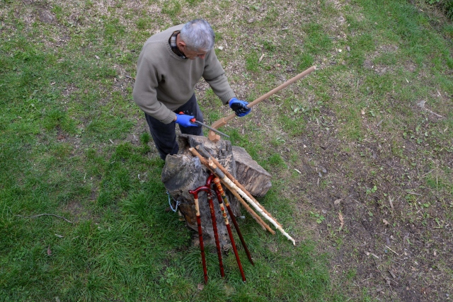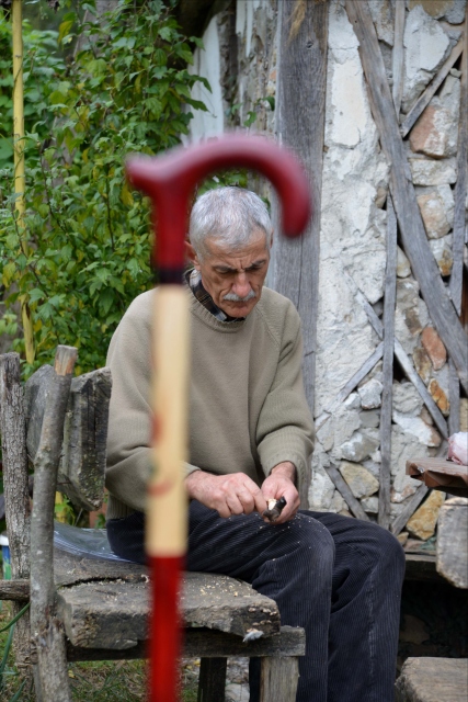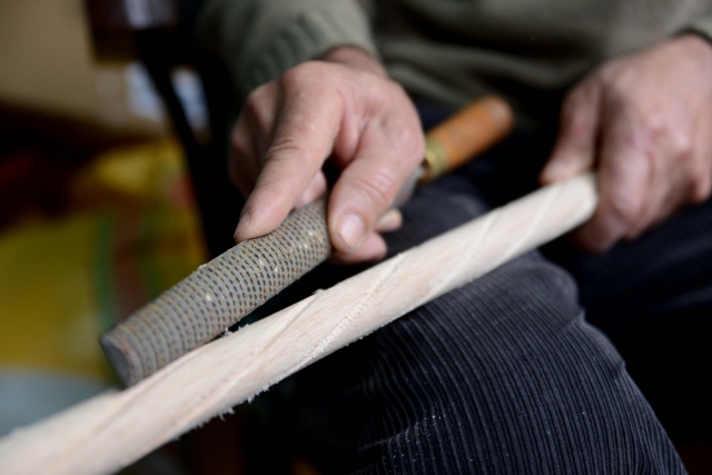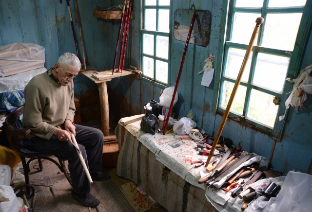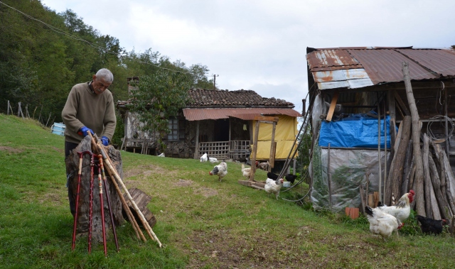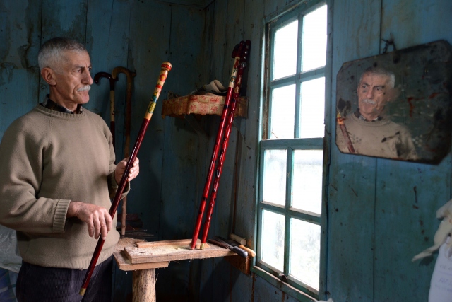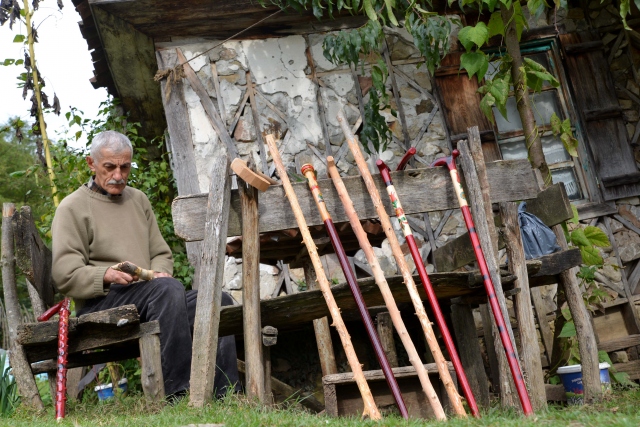 Ordu'da baston üretimi yapan Mehmet Tarık Akçay, mevsime göre eski evini ve bahçesini atölye olarak kullanıyor.