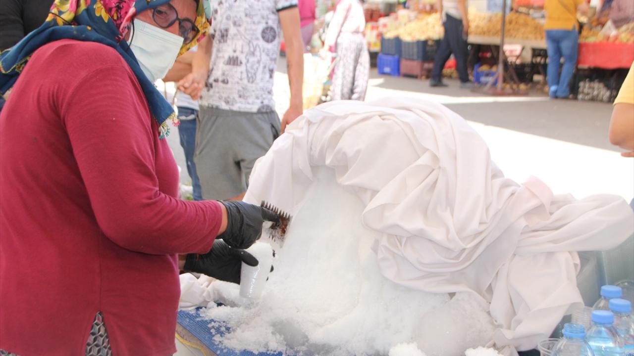 Karlamanın lezzetli olduğunu aktaran Salman, "Tamamen doğal. Hem ağızları tatlandırıyor hem de yaz aylarında serinletiyor. Halkın da talebi çok iyi." dedi.