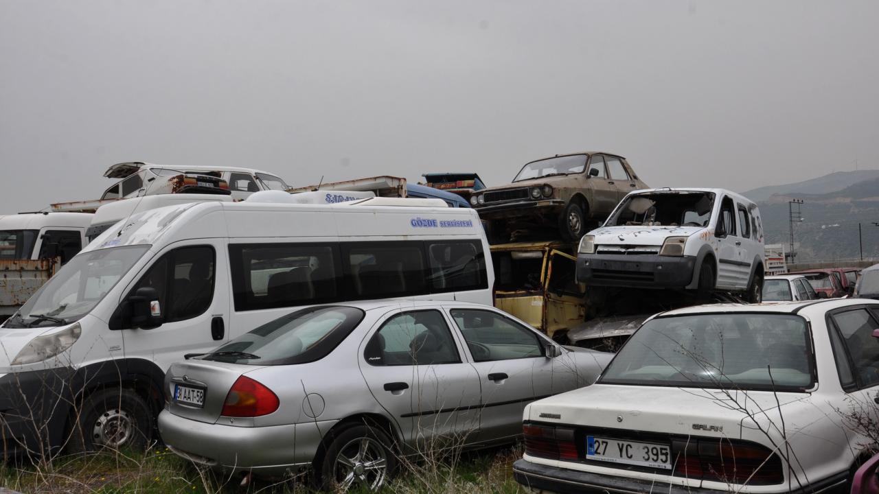 Gaziantep'in Nurdağı ilçesinde, çeşitli nedenlerle koruma altına alınan binlerce araç çürümeye terk ediliyor.