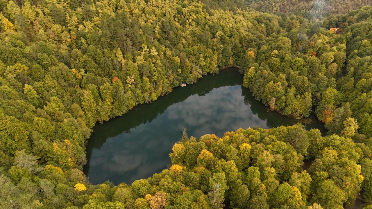 Bolu'nun doğa harikası Yedigöller Milli Parkı'nda, sonbaharın gelmesi ile birlikte renk cümbüşü yaşanıyor. Yeşil ile sarının farklı tonlarına bürünen Yedigöller, dronla görüntülendi.