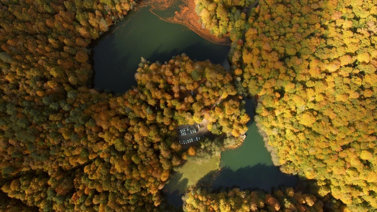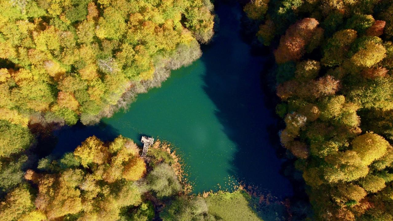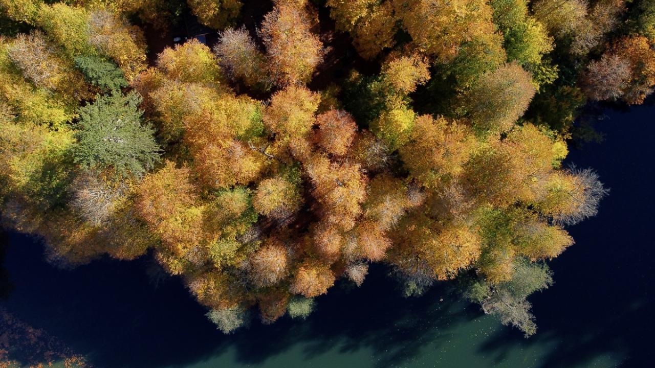 Bölgede hazan mevsiminde oluşan manzara, dronla görüntülendi.