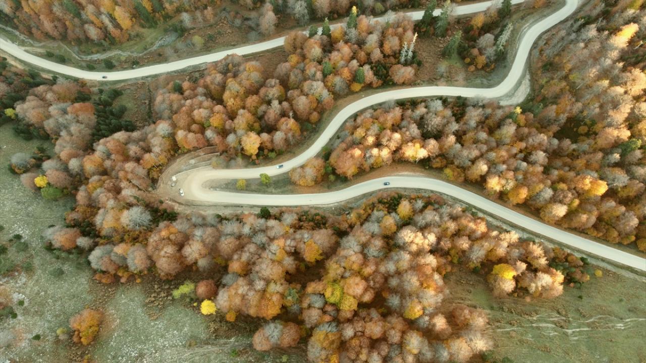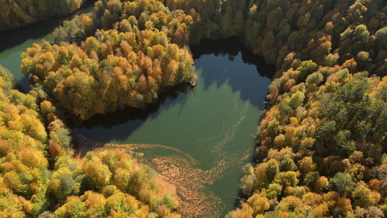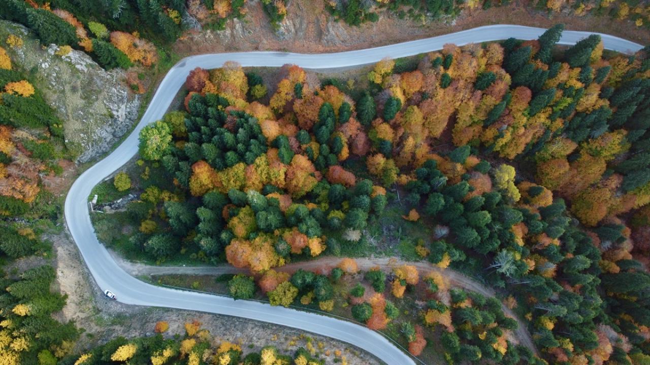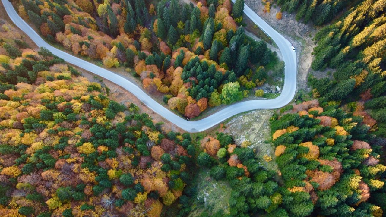 Bölgede hazan mevsiminde oluşan manzara, dronla görüntülendi.