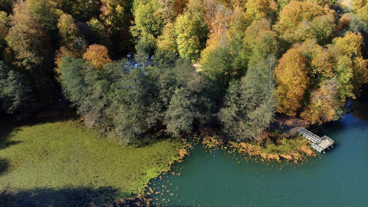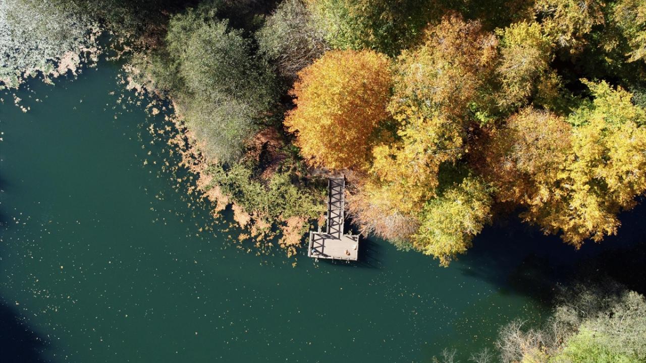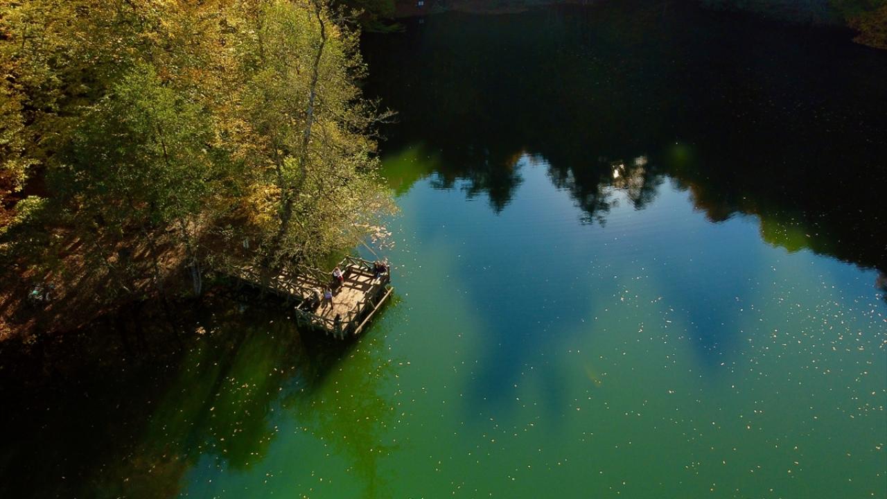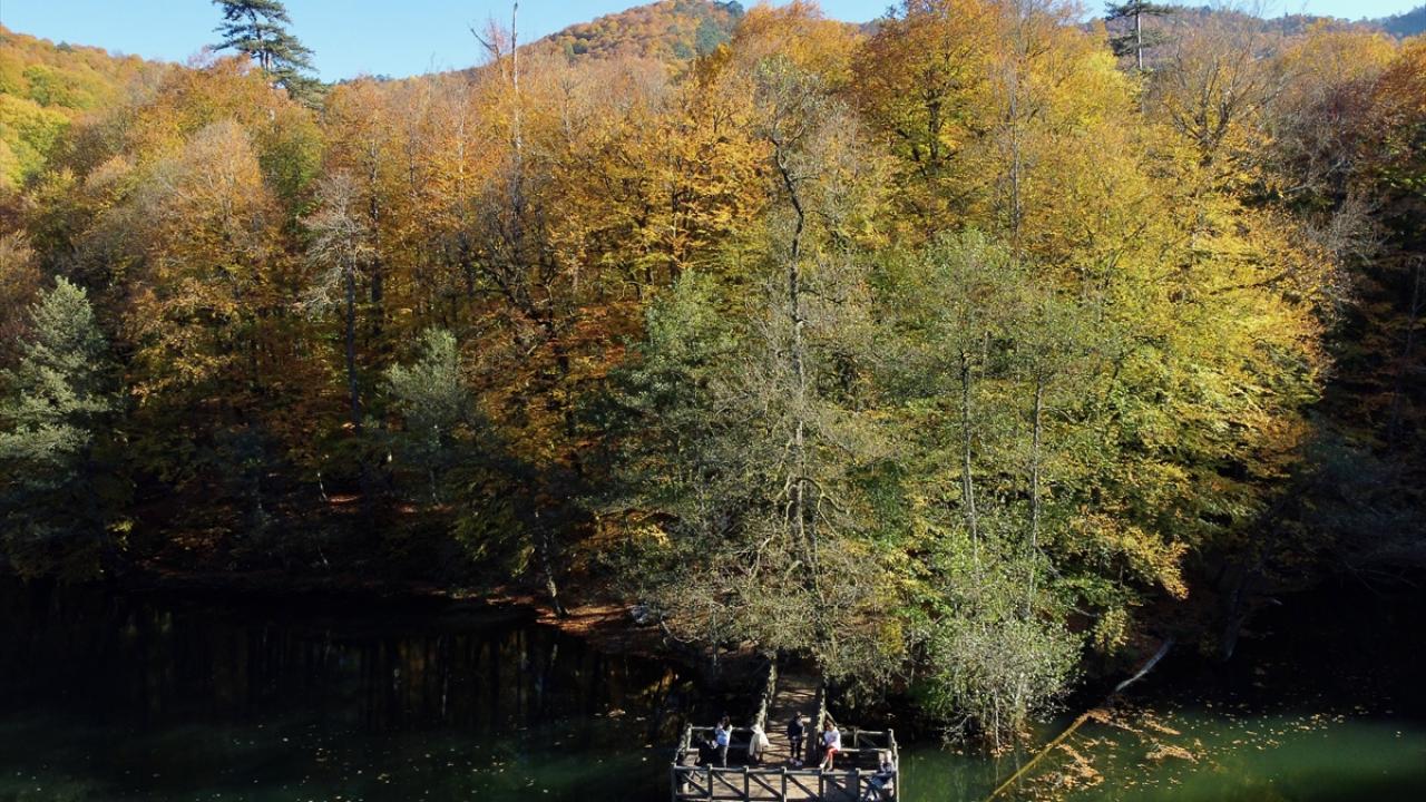 Doğa tutkunları, sonbaharla ayrı güzelliğe bürünen Yedigöller`in sunduğu görüntüyü fotoğraf çekerek ölümsüzleştiriyor.