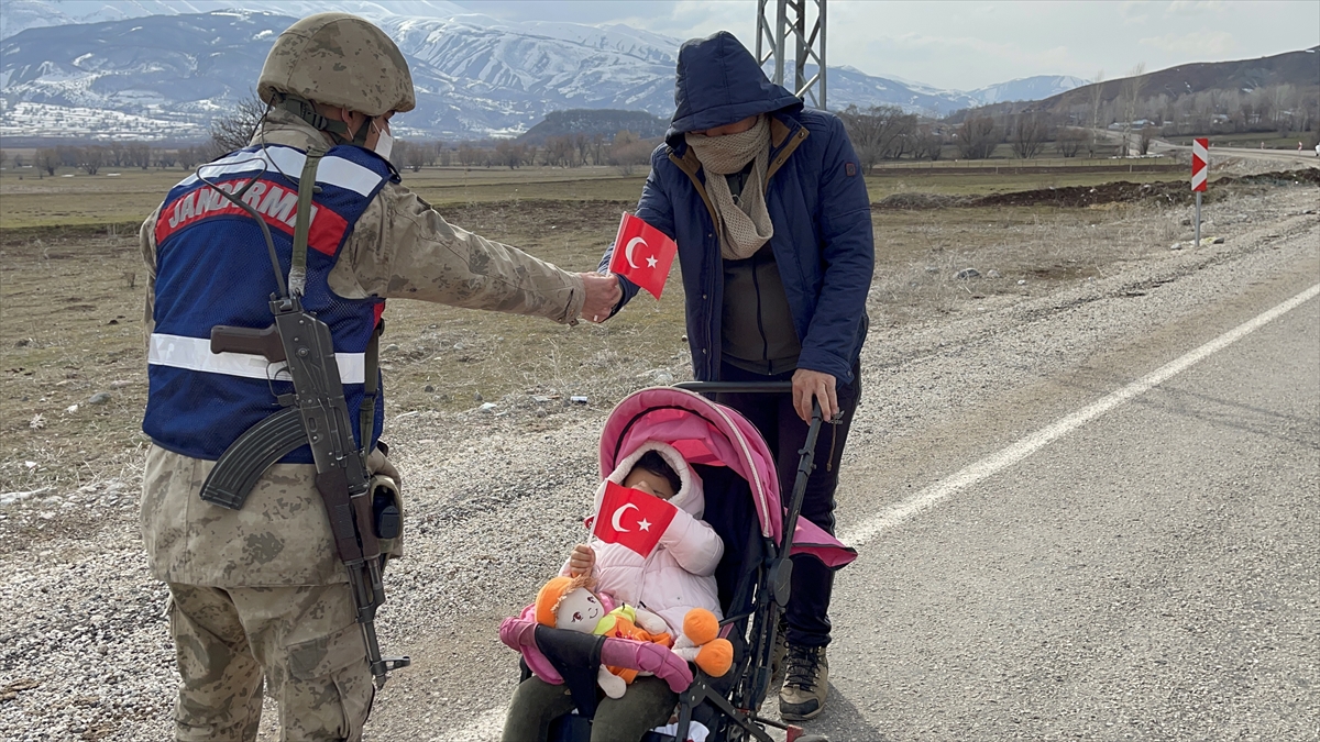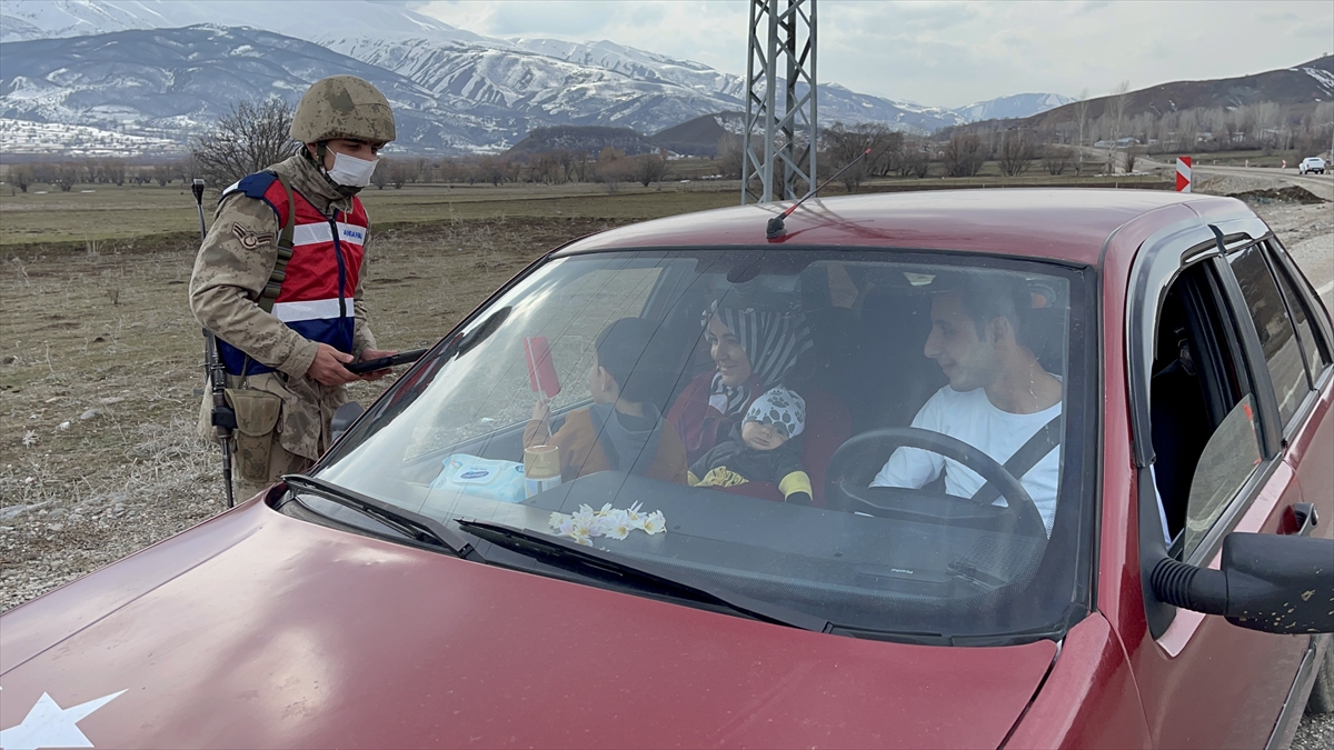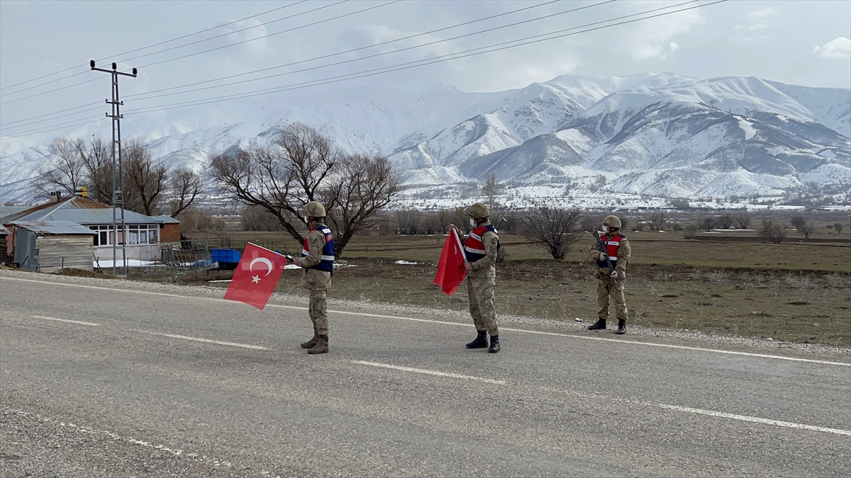 Yedisu İlçe Jandarma Komutanlığı ekipleri, tedbirlere uyanlara Türk bayrağı hediye etti.