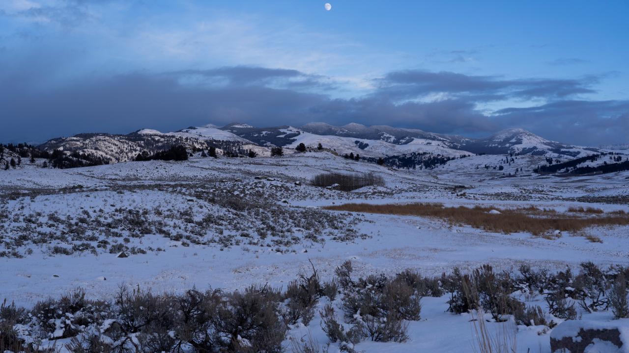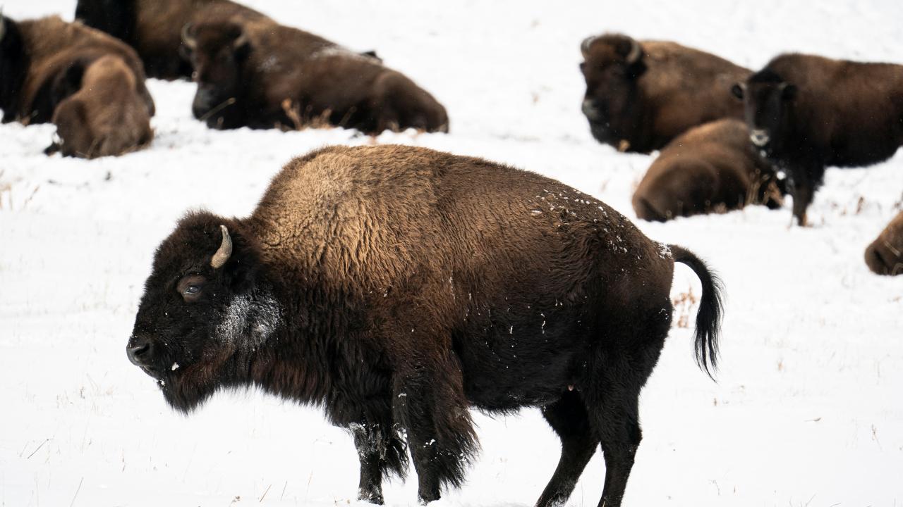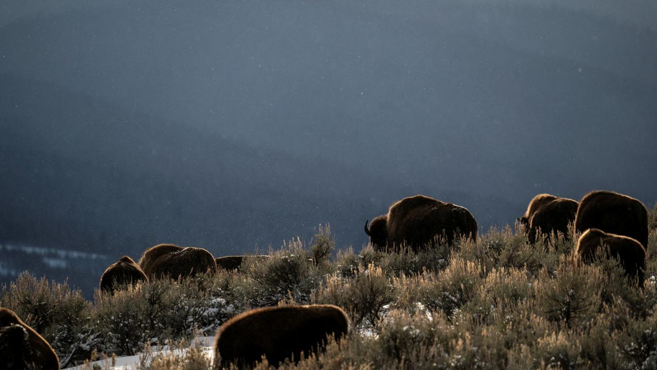 ABD'de Yellowstone Mili Parkı'na kar yağdı. Karla kaplanan Lamar Vadisi'ndeki yaşam görüntülendi.