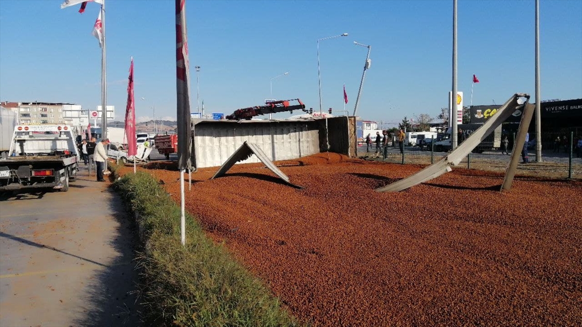 Balıkesir'in Susurluk ilçesinde otomobille çarpışan yem yüklü tırın devrilmesi sonucu D-565 kara yolunun Balıkesir yönü ulaşıma kapandı, kazada 2 kişi yaralandı.