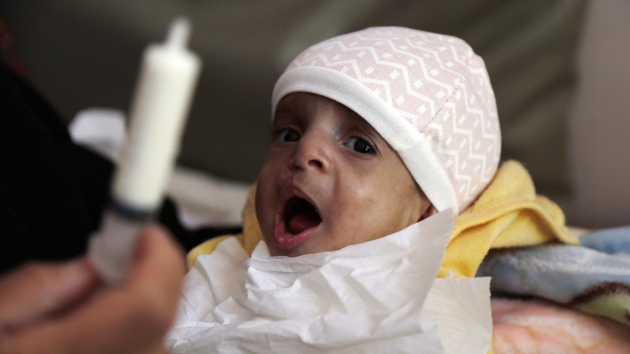 Yemen`de, yetersiz beslenme sorunu yaşayan çocuklar, başkent Sana`daki Sabeen Hastanesinde kısıtlı imkanlarla tedavi görüyor.