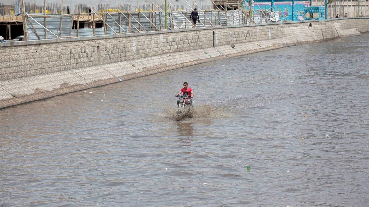 Husilerin kontrolündeki Sana kentinde altyapı yetersizliği sebebiyle oluşan su birikintileri, Yemenlilere zor anlar yaşattı.