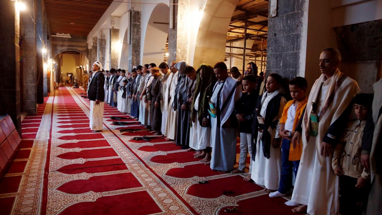 Yemenliler, ülkenin dört bir yanındaki cami ve meydanlarda Ramazan Bayramı namazını eda etti. Başkent Sana'daki vatandaşlar, bayram namazını Ulu Cami'de kıldı.