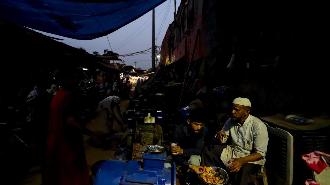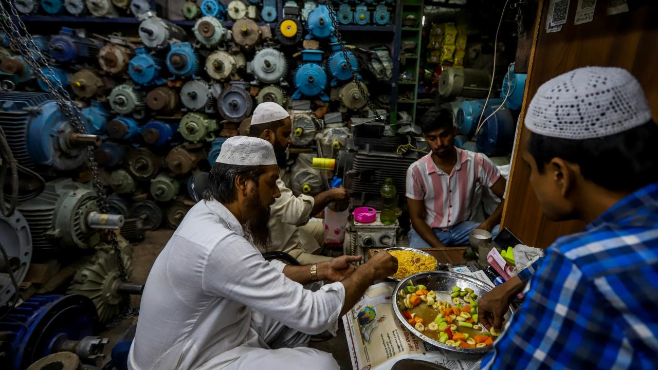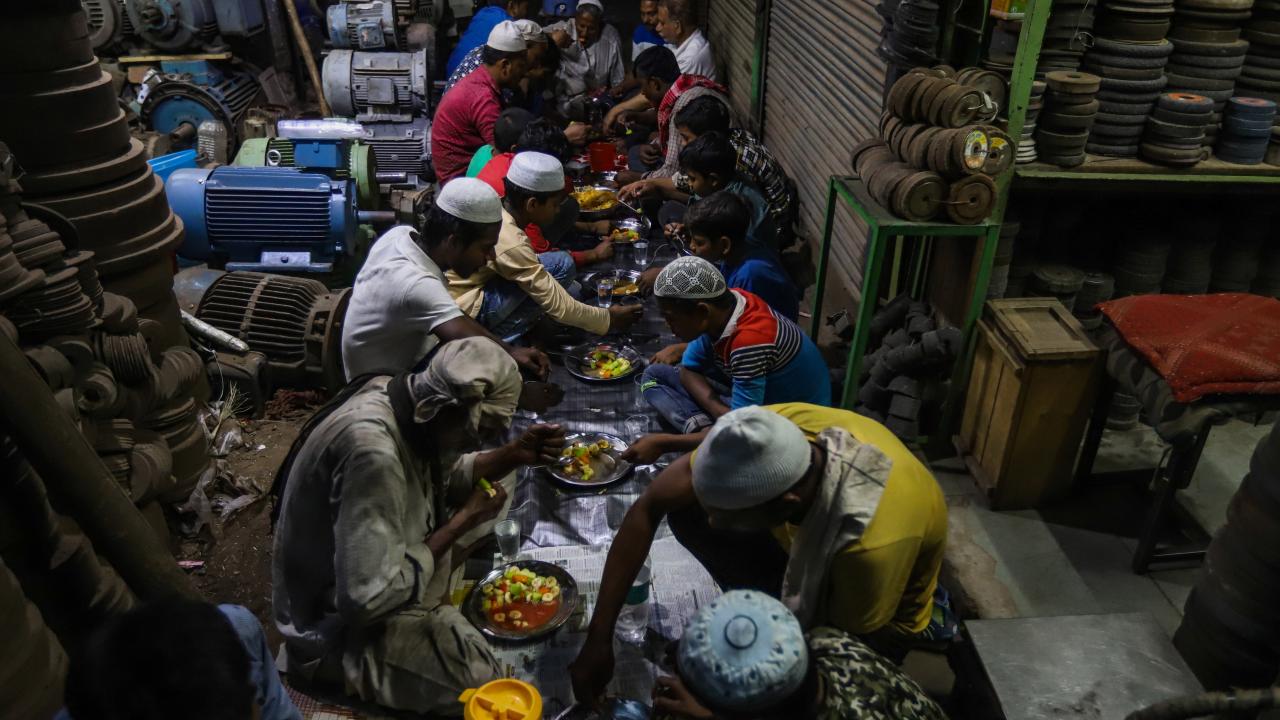 Hindistan'ın başkenti Yeni Delhi'deki Müslümanlar, Ramazan ayında iftarlarını yerel bir hırdavat pazarında kurulan sofralarda yaptıktan sonra namaz kıldı.
