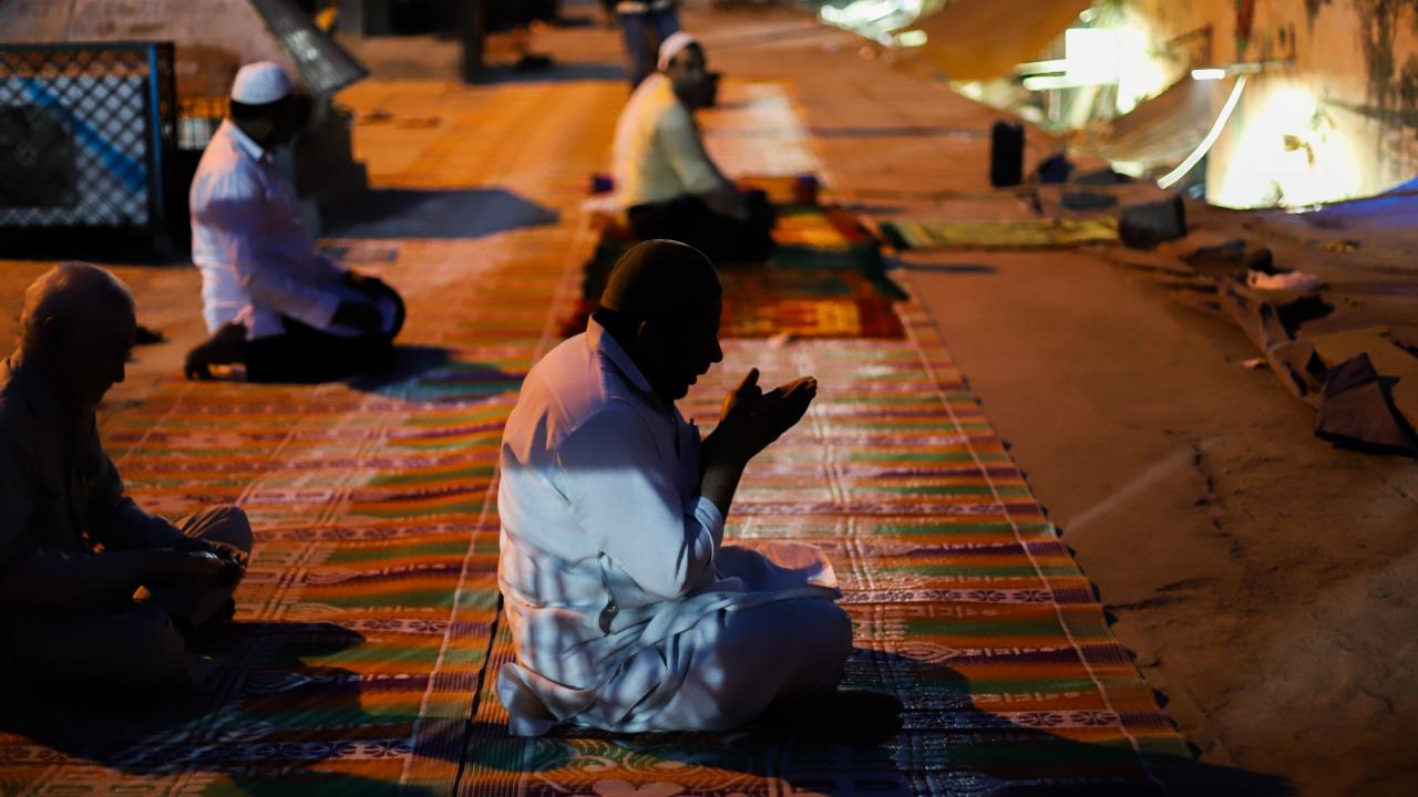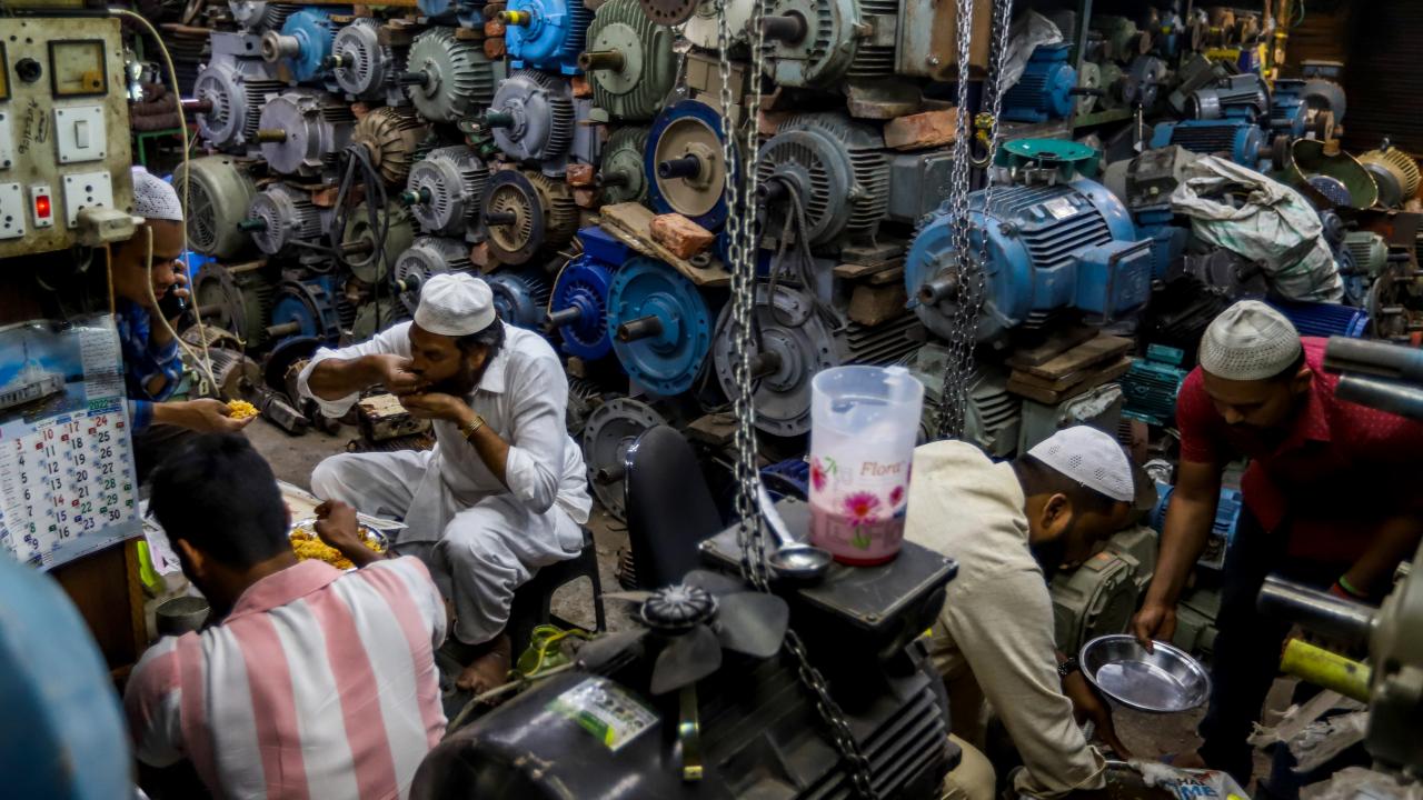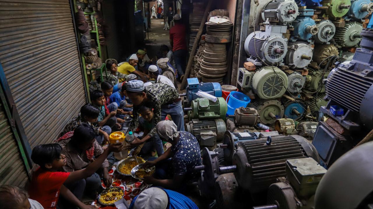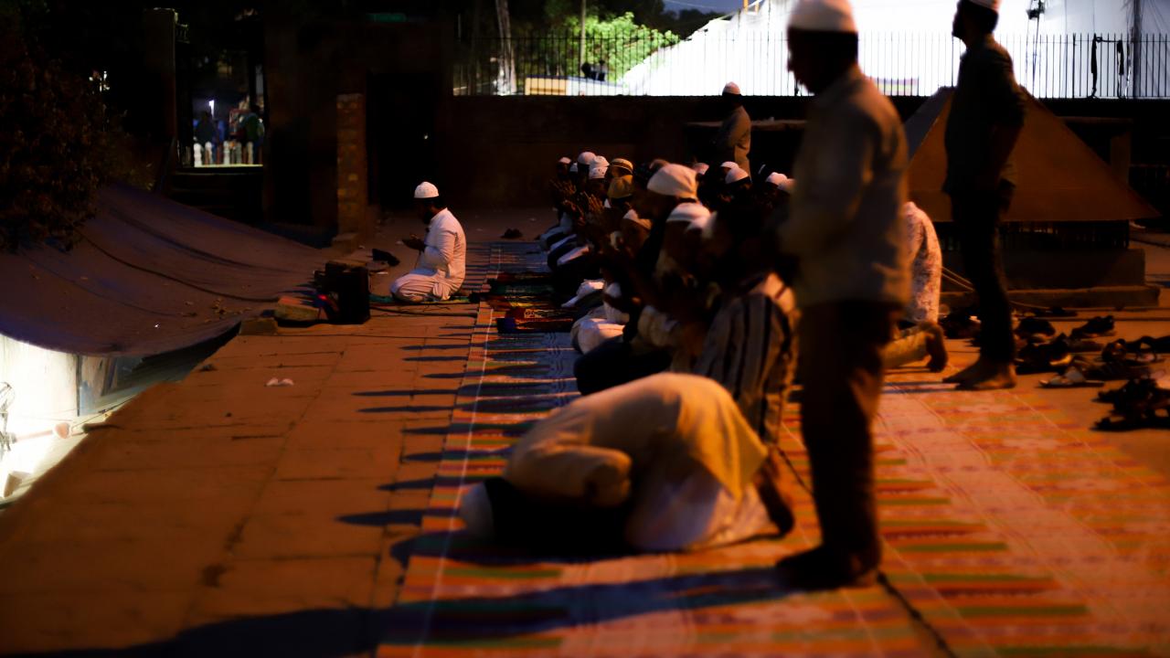 Hindistan'ın başkenti Yeni Delhi'deki Müslümanlar, Ramazan ayında iftarlarını yerel bir hırdavat pazarında kurulan sofralarda yaptıktan sonra namaz kıldı.