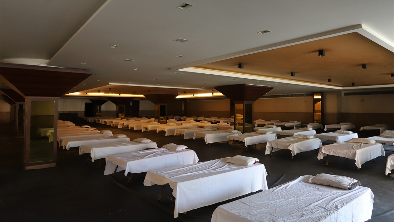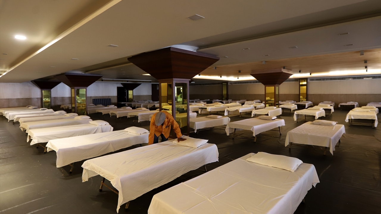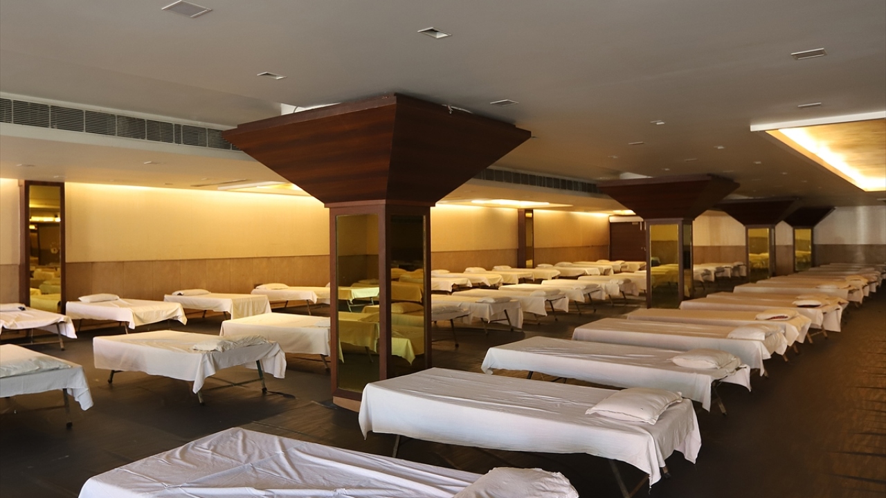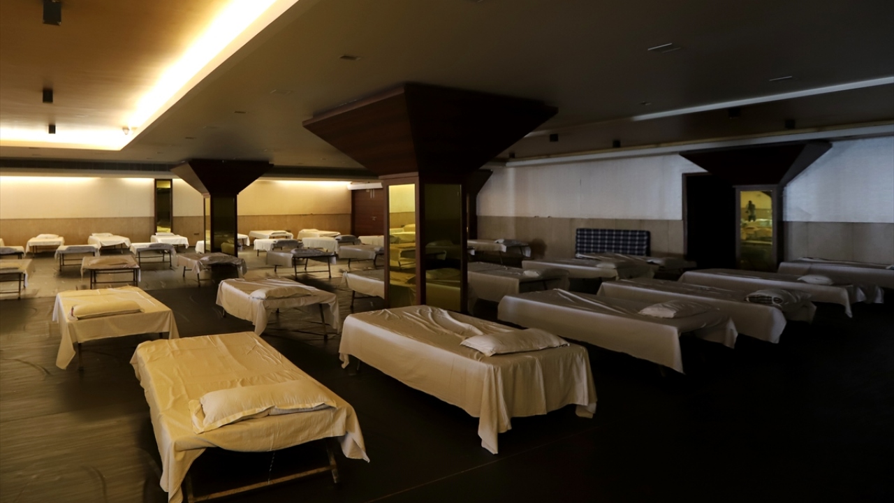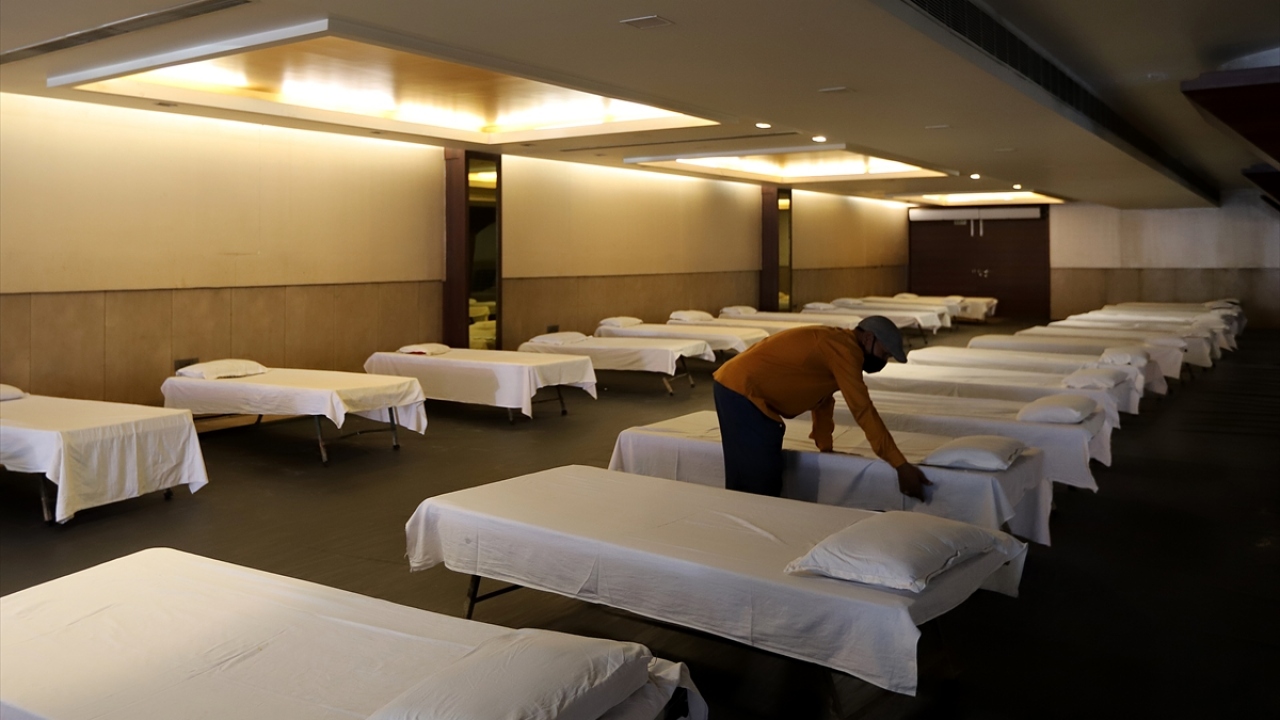 Hindistan'ın başkenti Yeni Delhi'de yeni tip koronavirüs (Covid-19) salgını ile mücadele kapsamında bir restoran Covid-19 hastaları için bakım merkezine dönüştürüldü.
