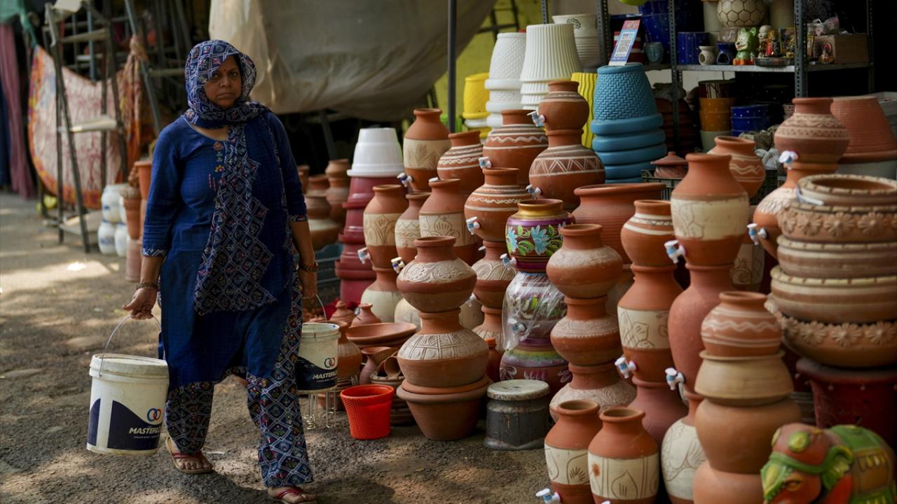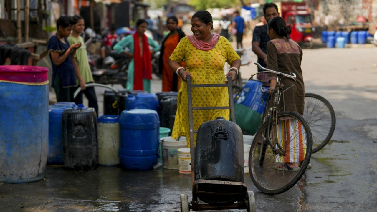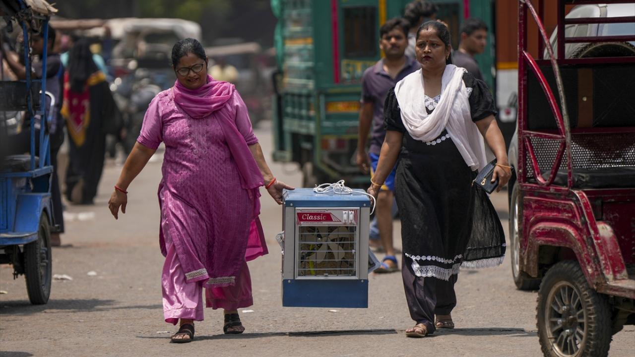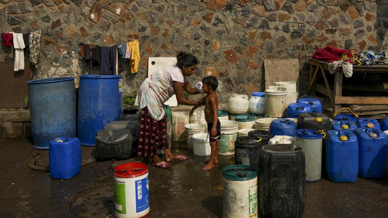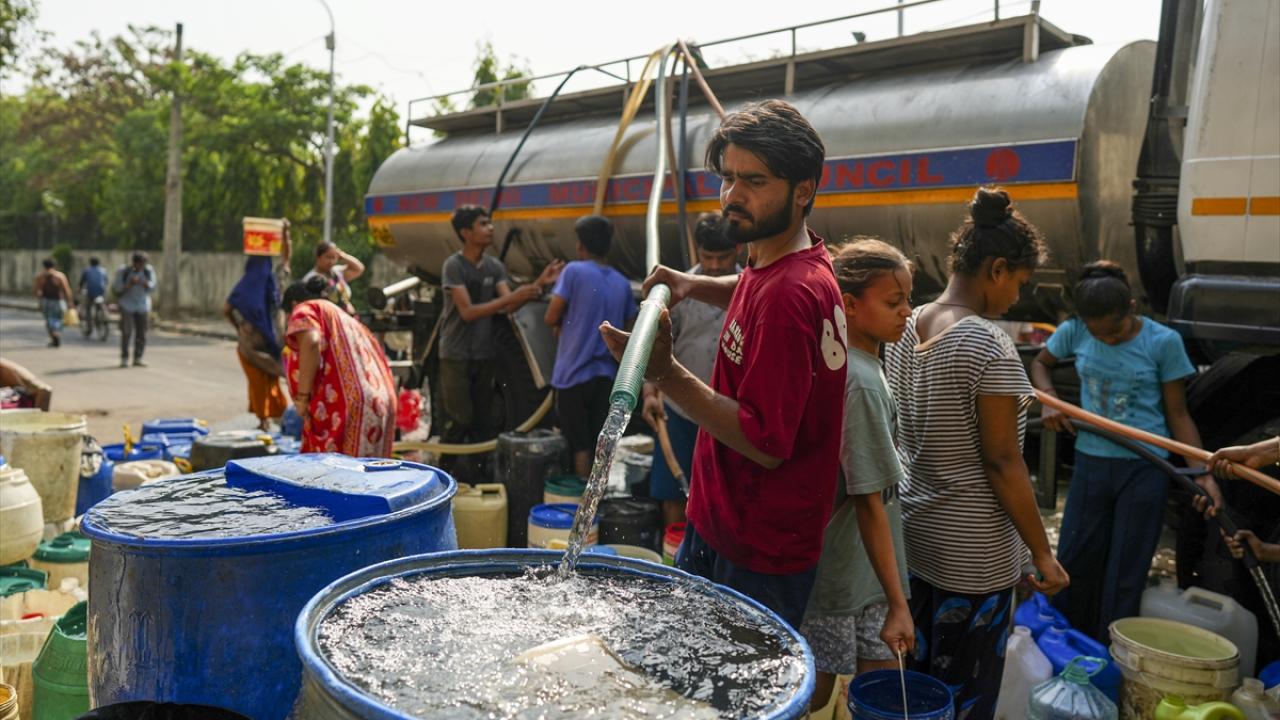 Hava sıcaklıklarının mevsim normallerinin üstünde olması nedeniyle 5 günlük kırmızı alarm verilen Hindistan'ın başkenti Yeni Delhi'de insanlar su tankerleri başında kuyruk oluşturuyor.