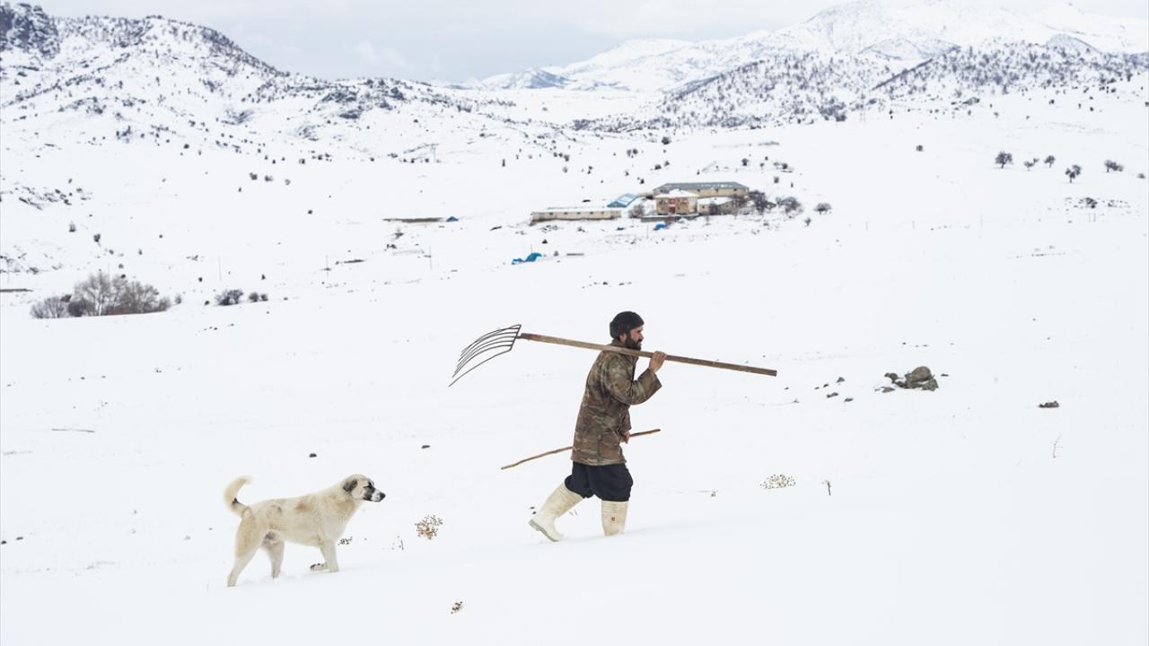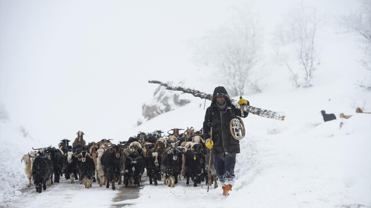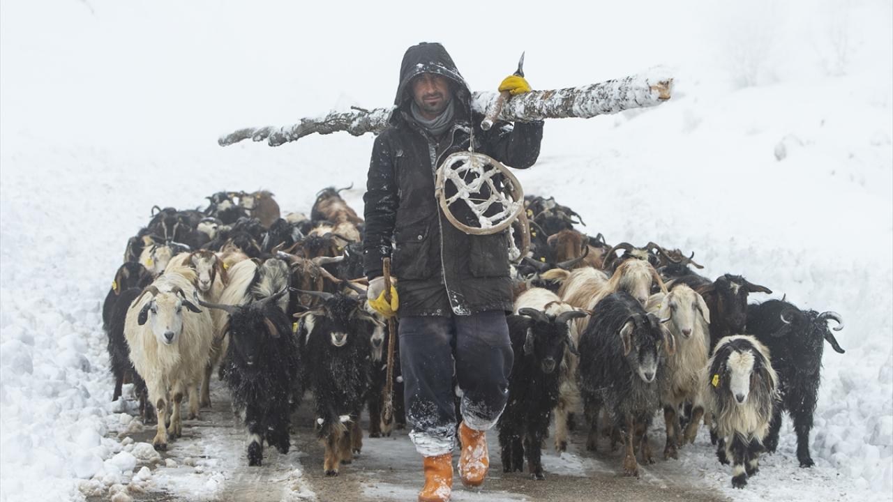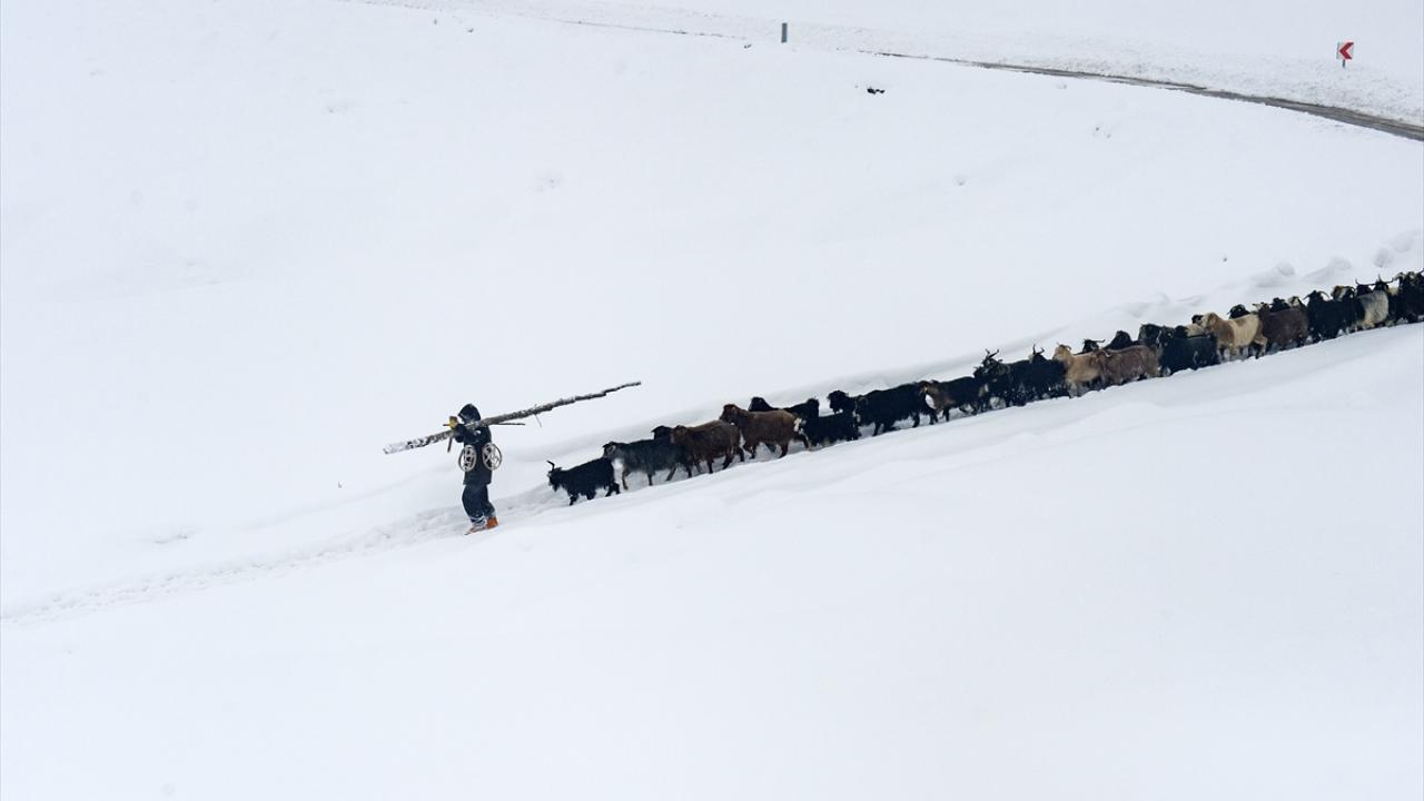 Güneş doğmadan önce uyanıp evlerinin alt kısmındaki ahırlara inen besiciler, yaklaşık 3 kilometre uzakta kurdukları ağıllara ise karlar arasında zorlu yolculuk yaparak ulaşıyor.