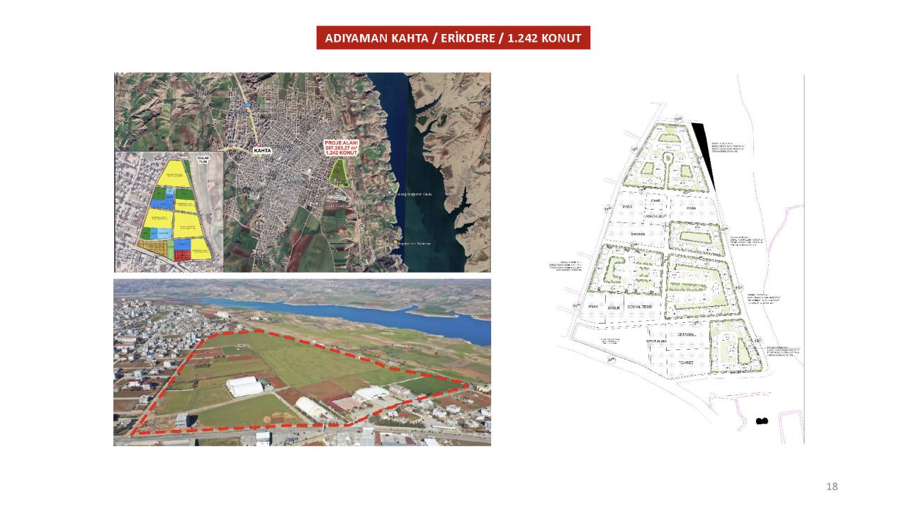 Adıyaman`ın Kahta ilçesine bağlı Erikdere Mahallesi`nde ise 1242 konut yapılacak.