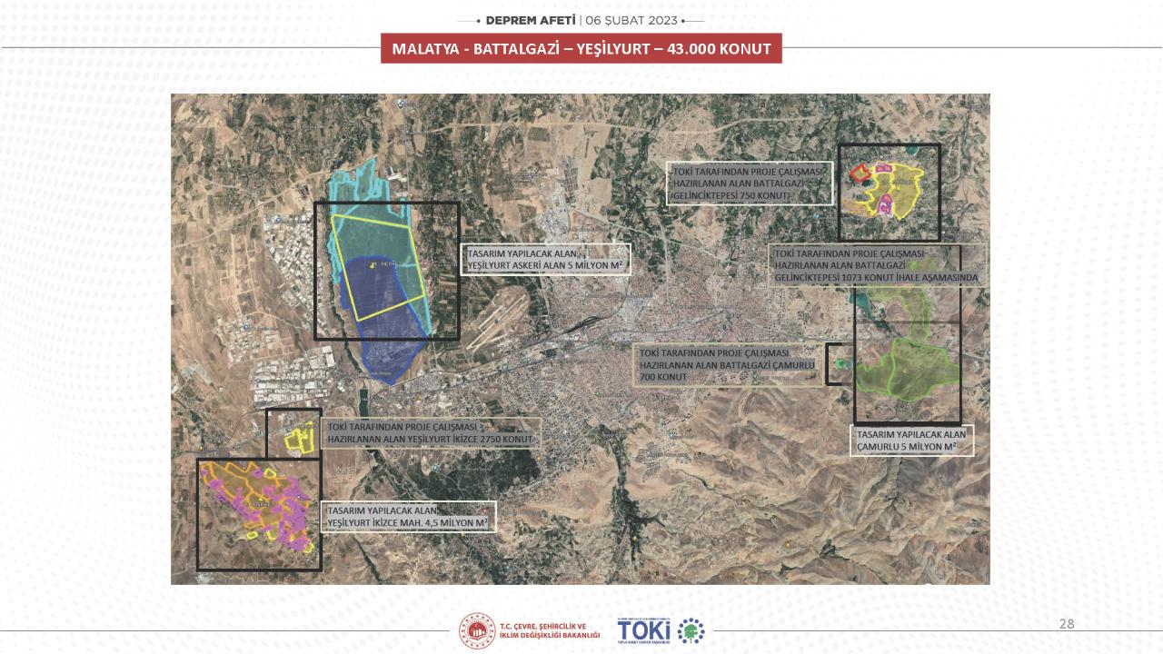 Malatya`nın Battalgazi ve Yeşilyurt ilçelerinde belirlenen alanlara toplam 43 bin konut inşa edilecek.