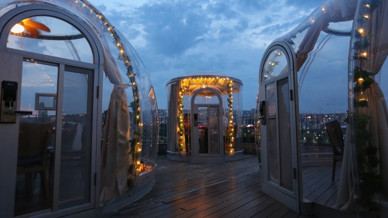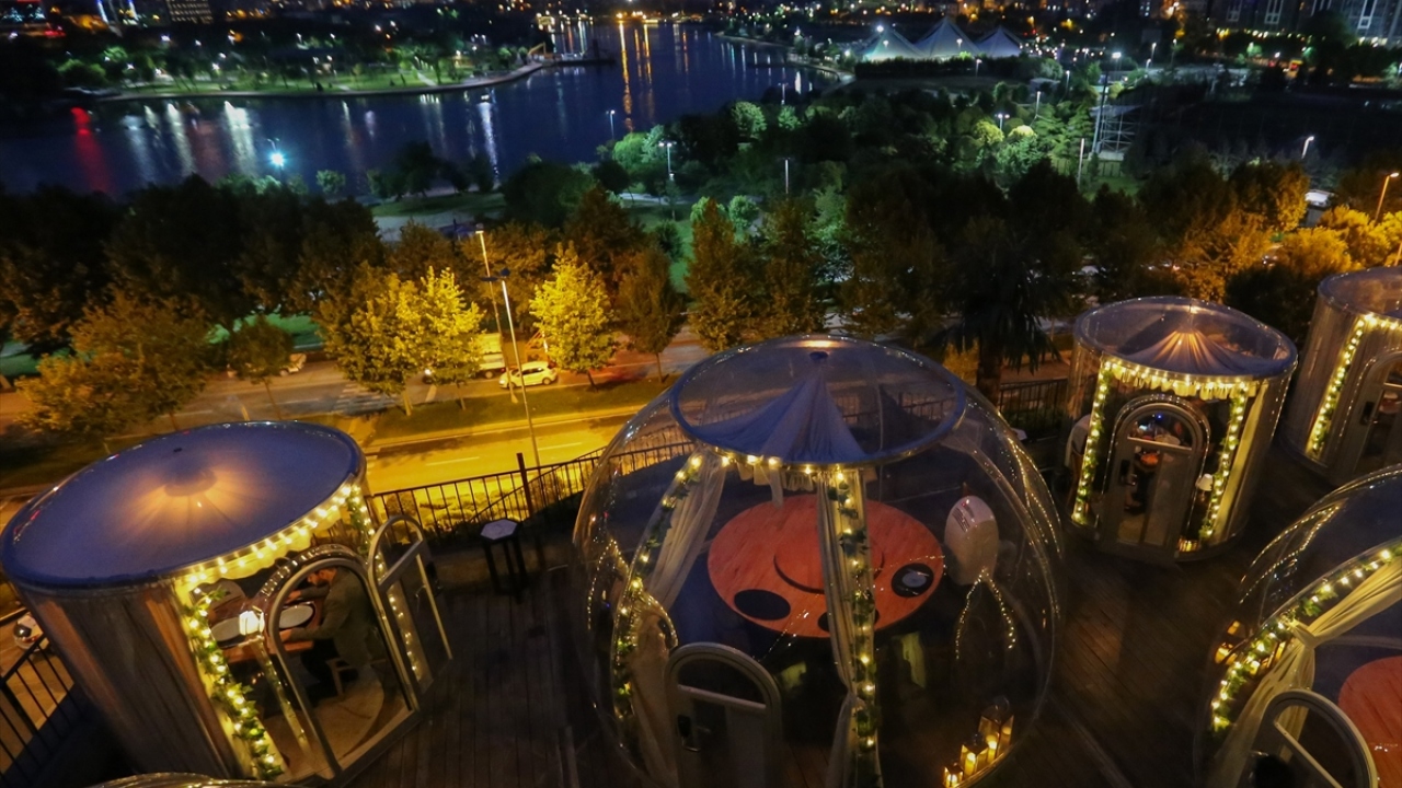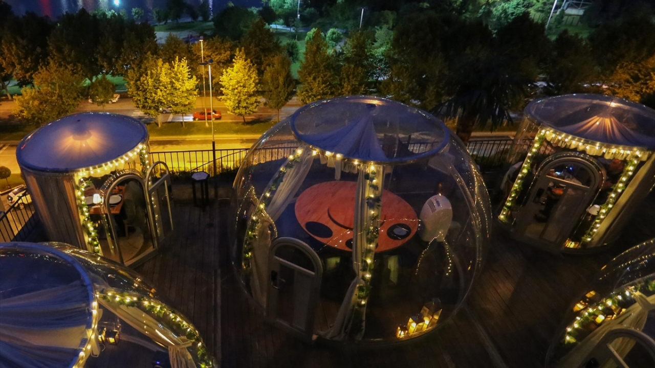 İki terastan oluşan restoranda izole bir ortamda müşterileri ağırlamak için polikarbon bazlı kubbeleri yaptırdıklarını dile getiren Aysay, bir masanın bulunduğu kubbe şeklindeki odalarda müşterilerin tedirgin olmadan rahatça yemeklerini yiyebildiklerini anlattı.