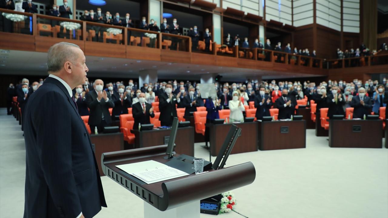Türkiye Cumhurbaşkanı Recep Tayyip Erdoğan, 27. Dönem 5. Yasama Yılı`nın açılışı dolayısıyla TBMM Genel Kurulu`nda milletvekillerine hitap etti.