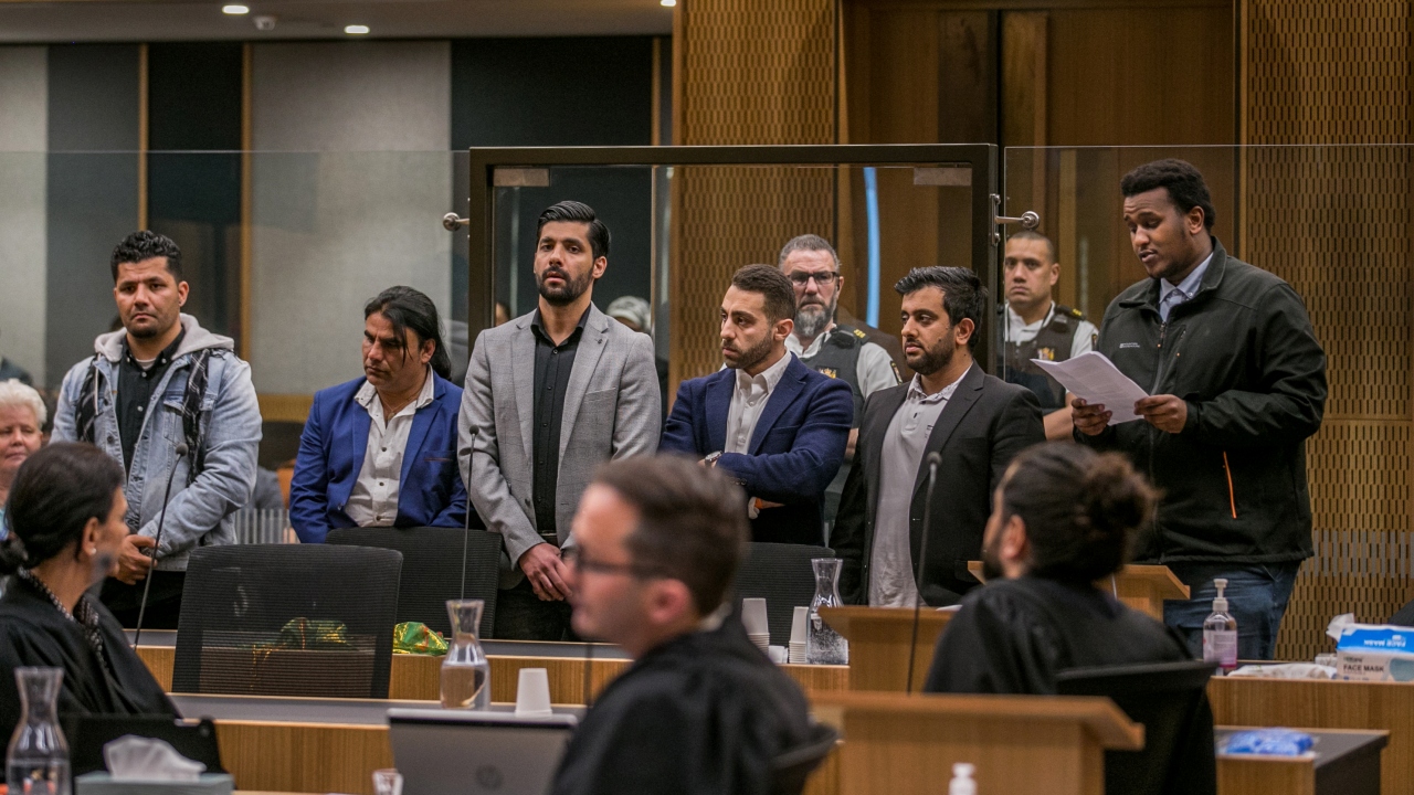 Tarrant, güvenlik görevlileri eşliğinde elleri kelepçeli halde duruşma salonuna getirildi.