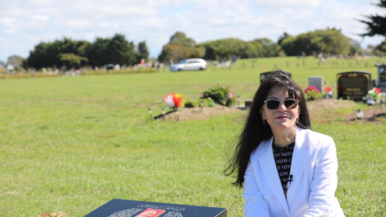 Janna Ezat, saldırılarda hayatını kaybeden oğlunun mezarını ziyaret etti.