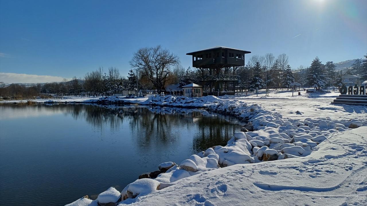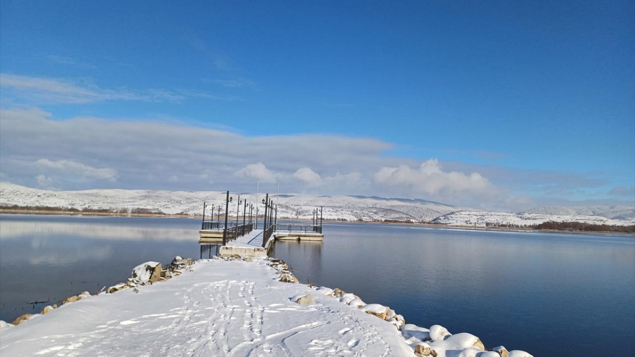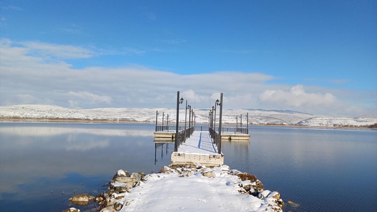 Yeniçağa Gölü'nün çevresi beyaz örtüyle kaplandı
