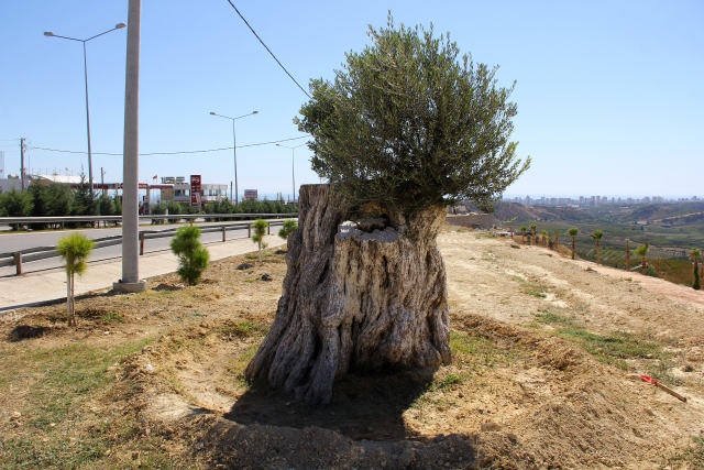 Mersin'de götürüldüğü hızarcıda belediye görevlileri tarafından fark edilerek 2 yıl önce yeniden dikilen 800 yıllık zeytin ağacı, ilk meyvesini verdi.