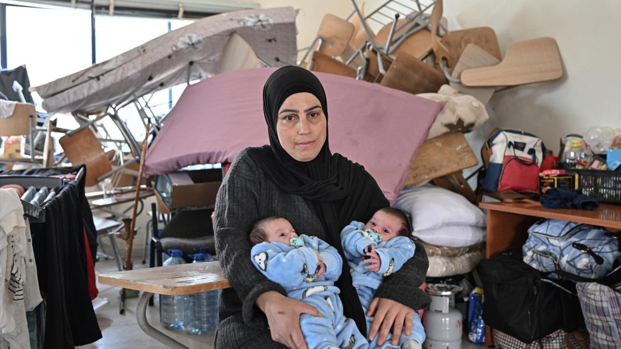 Adşit el-Kusayr beldesinden yerinden edilen 36 yaşındaki Ghada Mohammed Fadel, Sayda’da barınma merkezine dönüştürülen Lübnan Üniversitesi’nde ikiz bebekleri Muhammed ve Mehdi ile birlikte kalıyor.