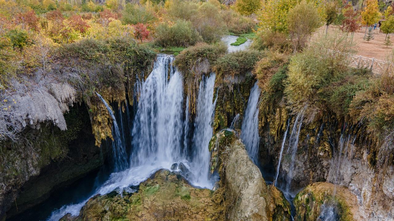 Göksu nehri üzerinde bulunan şelale, sonbaharın tonları ile birleşince ziyaretçilerini adeta büyülüyor.