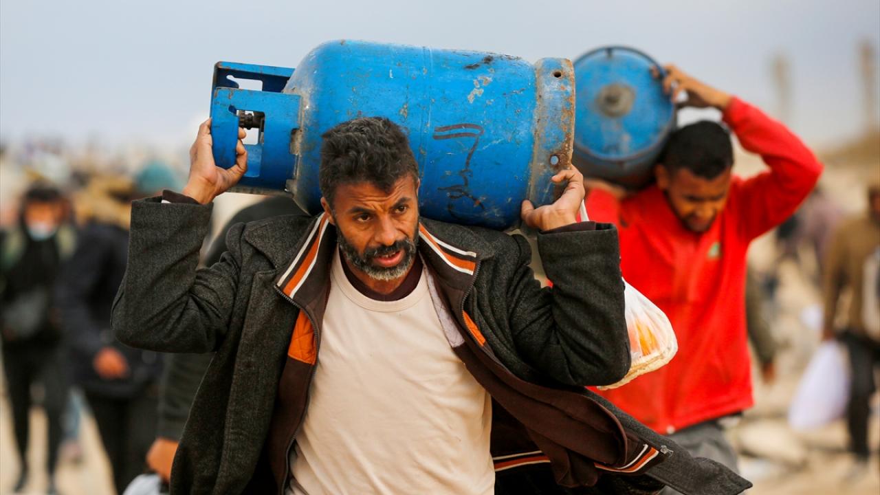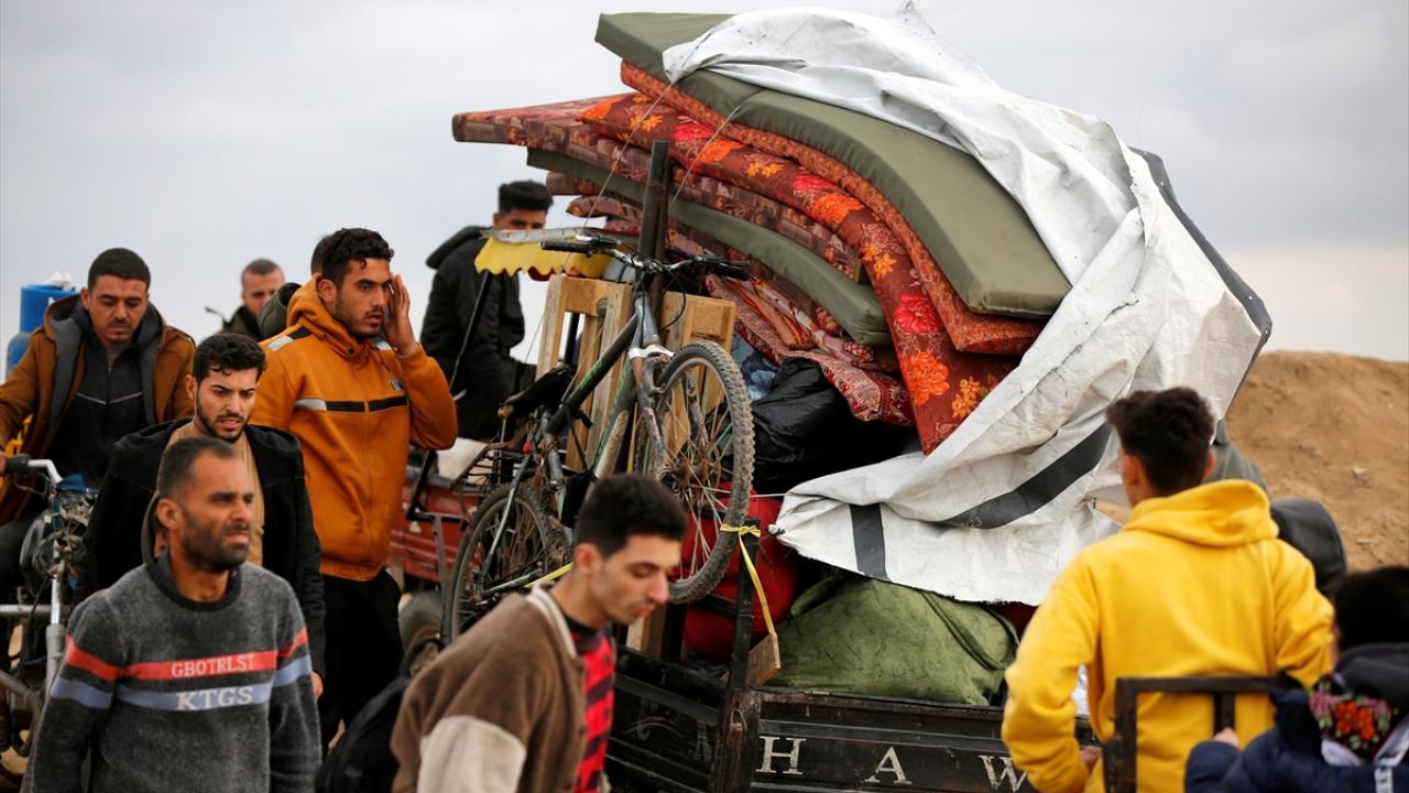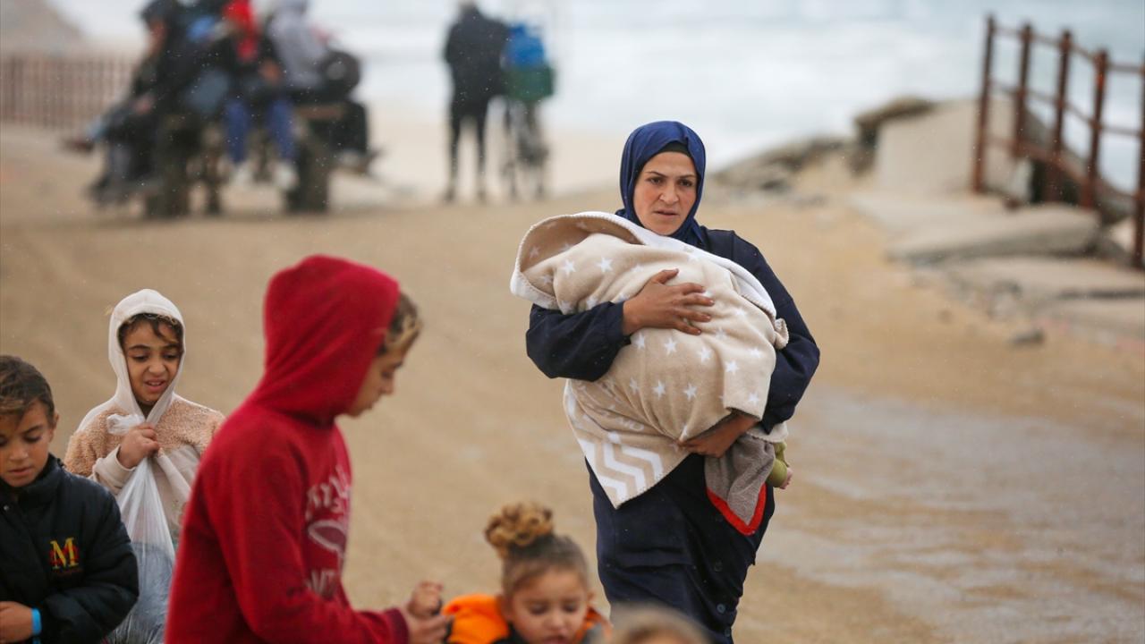 Filistinliler, zorlu kış şartlarına rağmen Gazze Şeridi`nin orta kesimindeki Nuseyrat Mülteci Kampı bölgesinin kuzeyindeki Reşid Caddesi üzerinden kuzeydeki evlerine dönmeye devam ediyor.