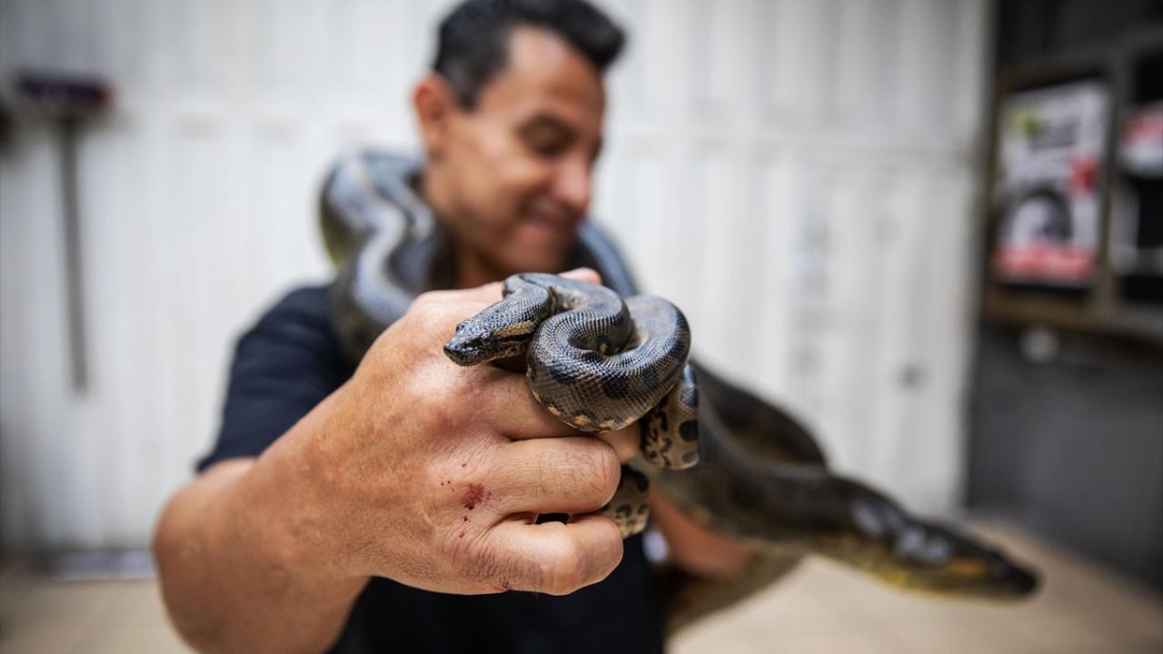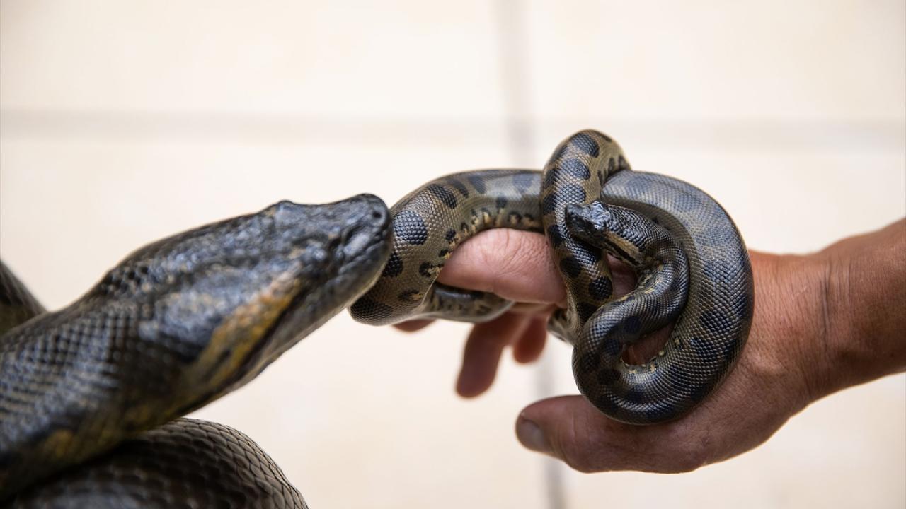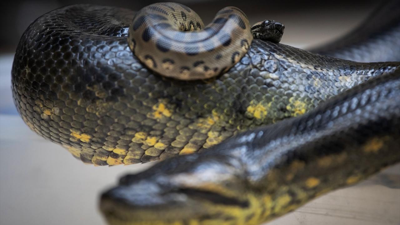 Dünyadaki en ağır yılan türü olarak bilinen yeşil anakonda, Meksika’nın başkenti Meksiko'da 19 yavru doğurdu.