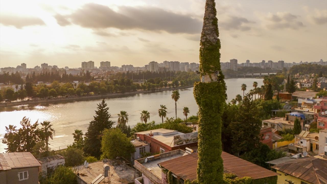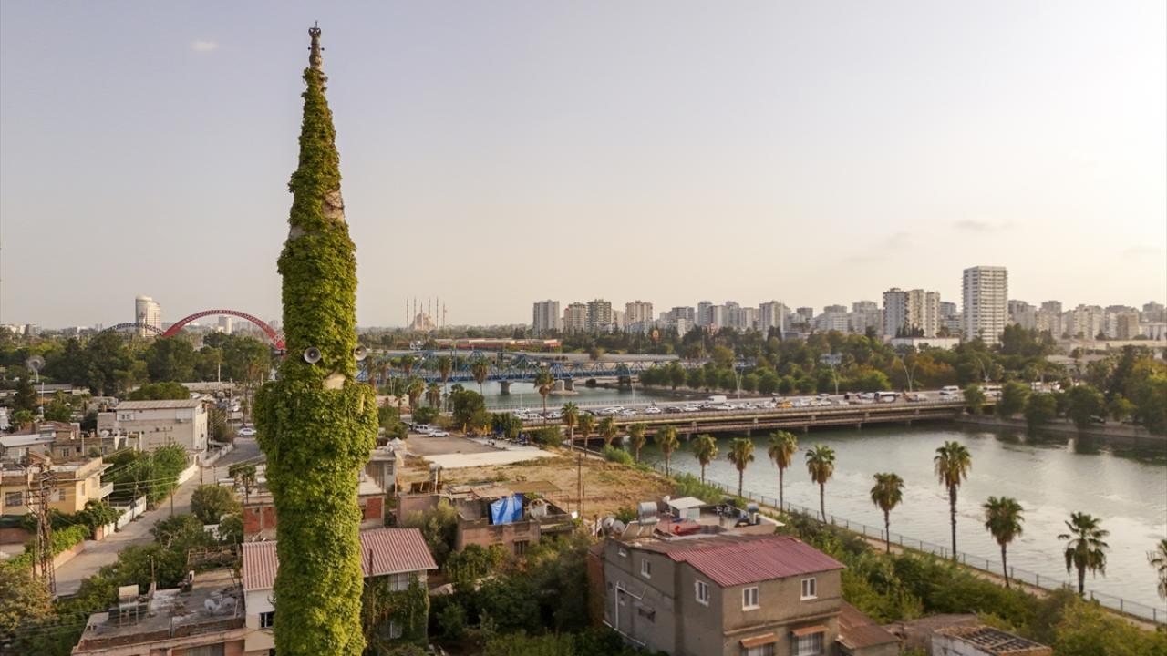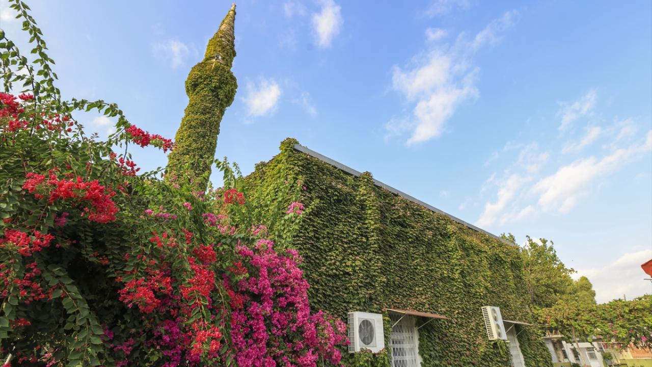 Adana'da, Seyhan Nehri'nin kıyısında bulunan dış duvar ve minaresini kaplayan sarmaşıklar nedeniyle "Yeşil Cami" olarak bilinen Köprüköy Camii, bahçesinde açan farklı renklerde çiçekler ve yeşilin tonlarıyla dikkati çekiyor.