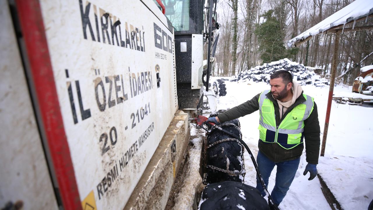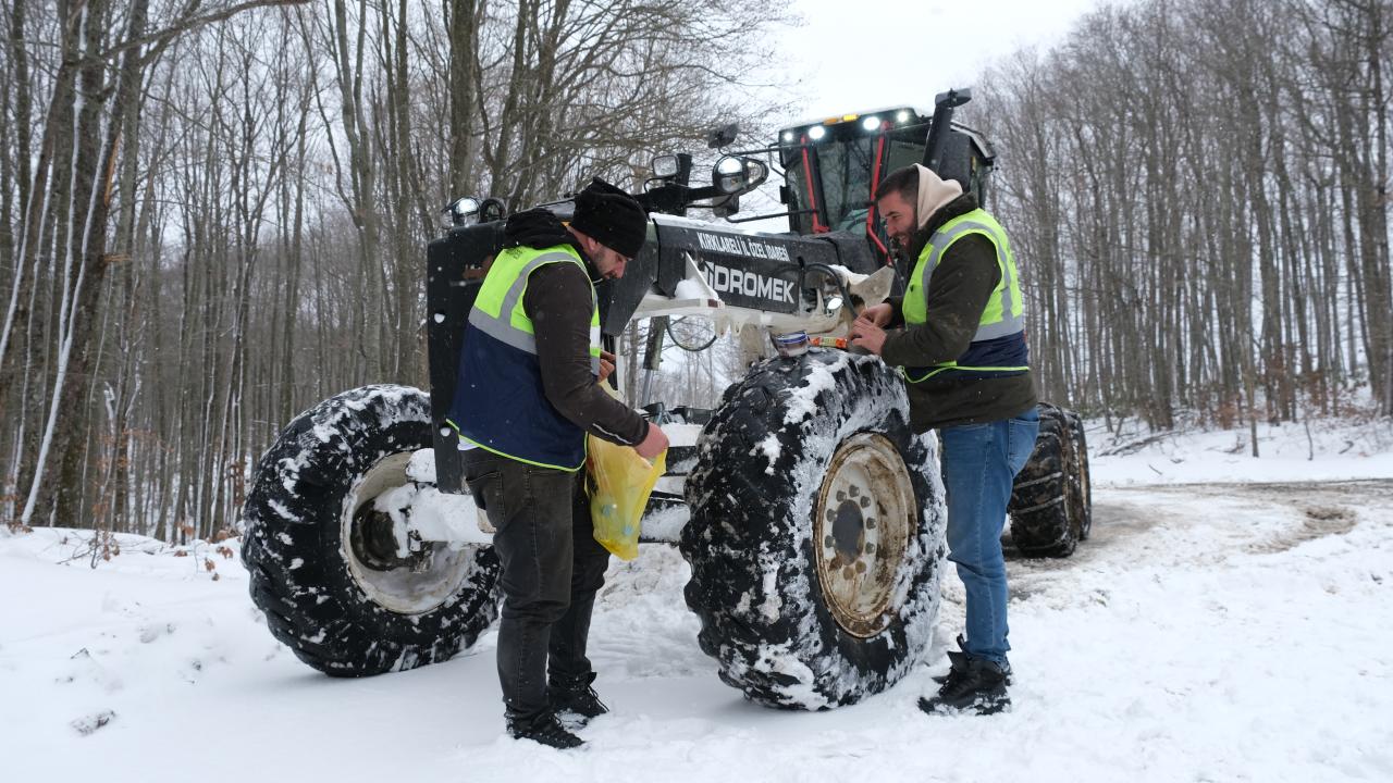 Kış şartlarının çetin geçtiği Istranca Dağları`nın eteklerinde etkili olan kar yağışı nedeniyle birçok köy yolu ulaşıma kapanıyor. İşçiler bu sefer de dondurucu soğukta kar mesaisi yapıyor.