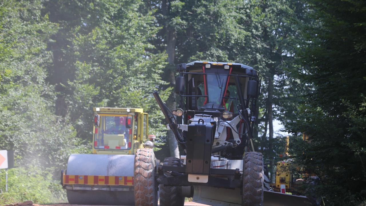 Yeşil yelekliler iş makineleriyle asfalt kaplanacak yolları temizleyip ardından dolgu malzemesi ile hazır hale getiriyor.
