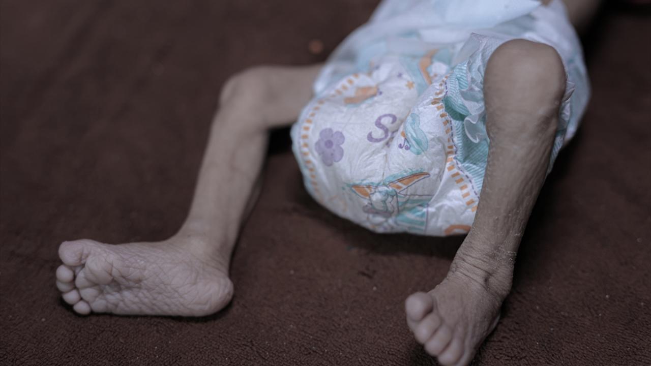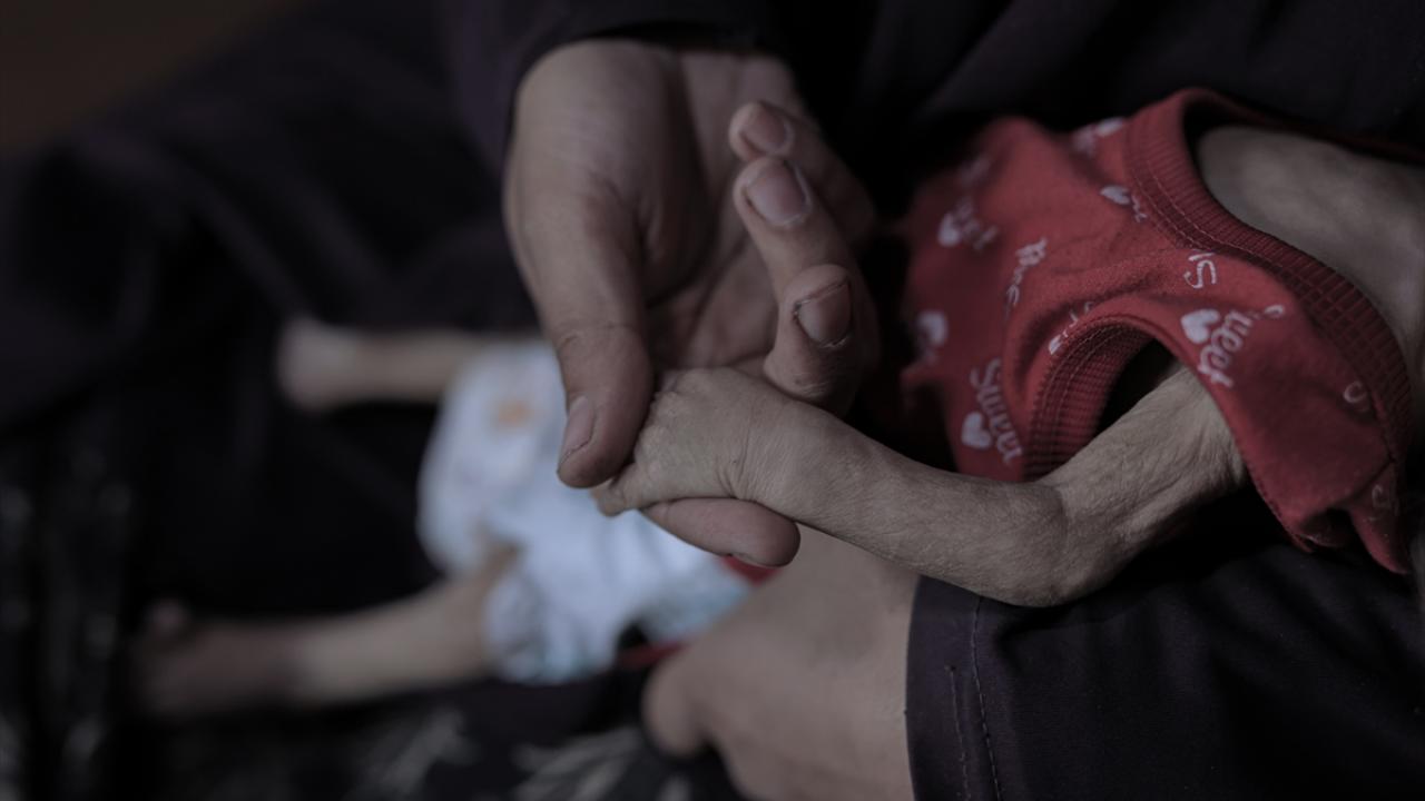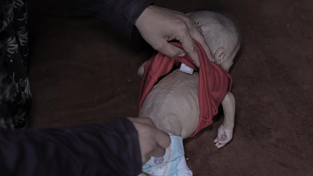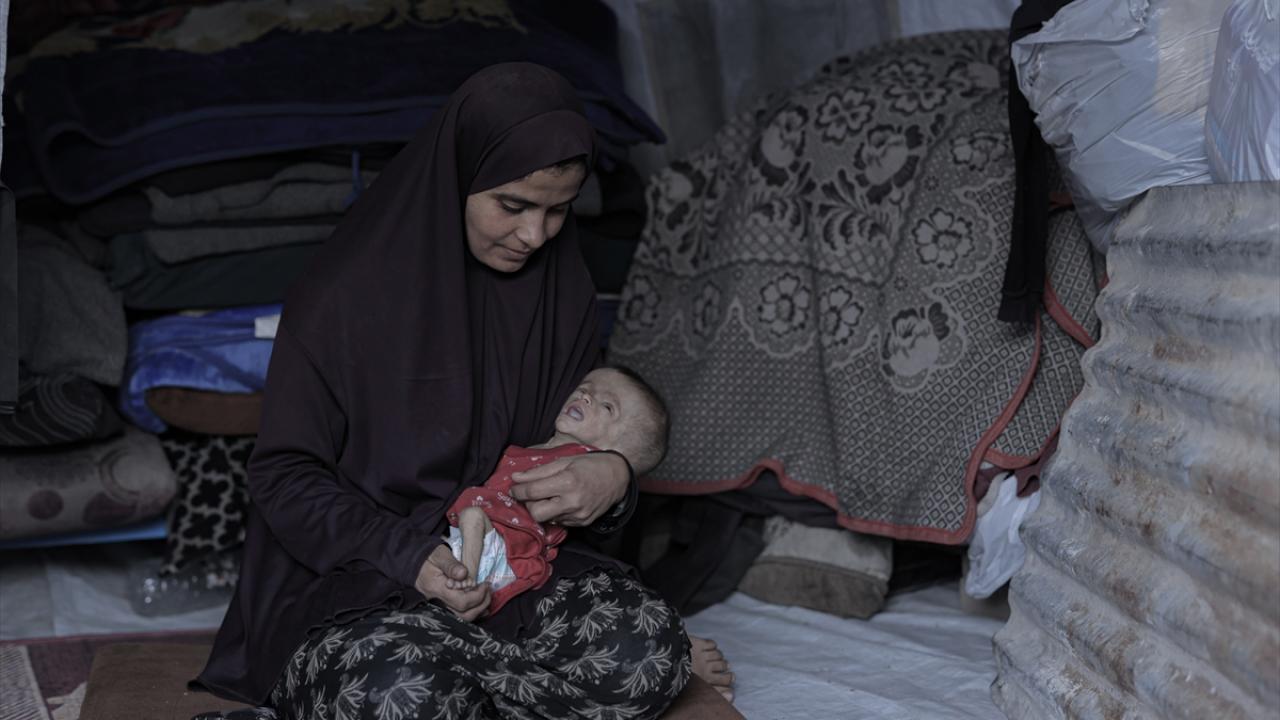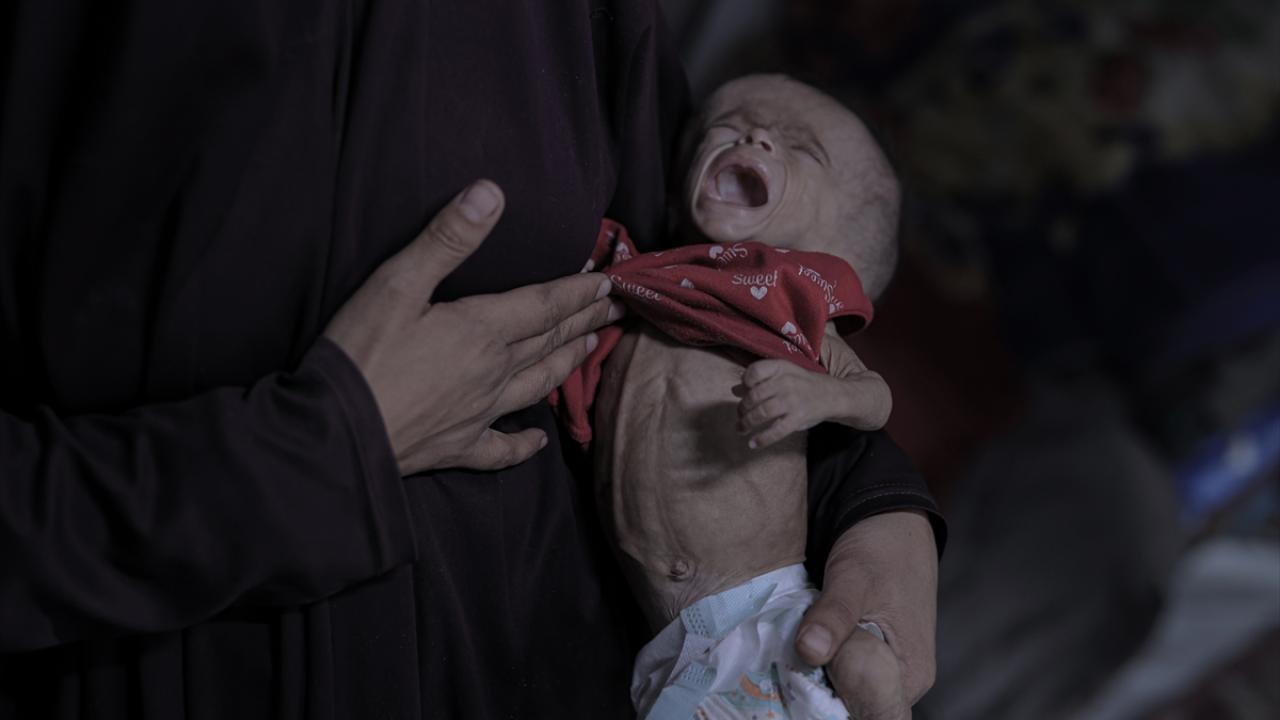 Gazze kentinin orta kesimindeki Yermuk bölgesinde yaşayan 5 aylık bebek Remzi Bahara, gıda ve tıbbi tedaviye erişimdeki yetersizlik nedeniyle şiddetli yetersiz beslenme sorunu yaşıyor.