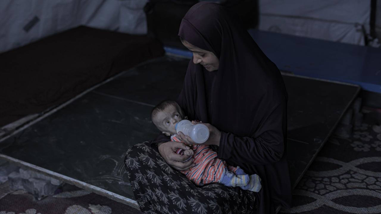 Yetersiz beslenme sorunu yaşayan Filistinli bebek, yaşam mücadelesi veriyor