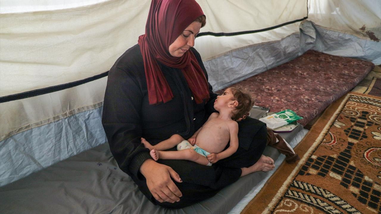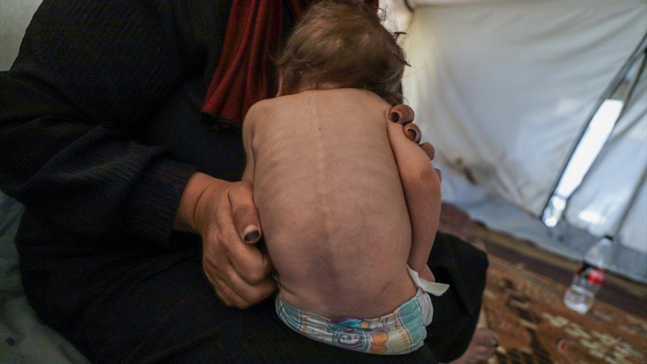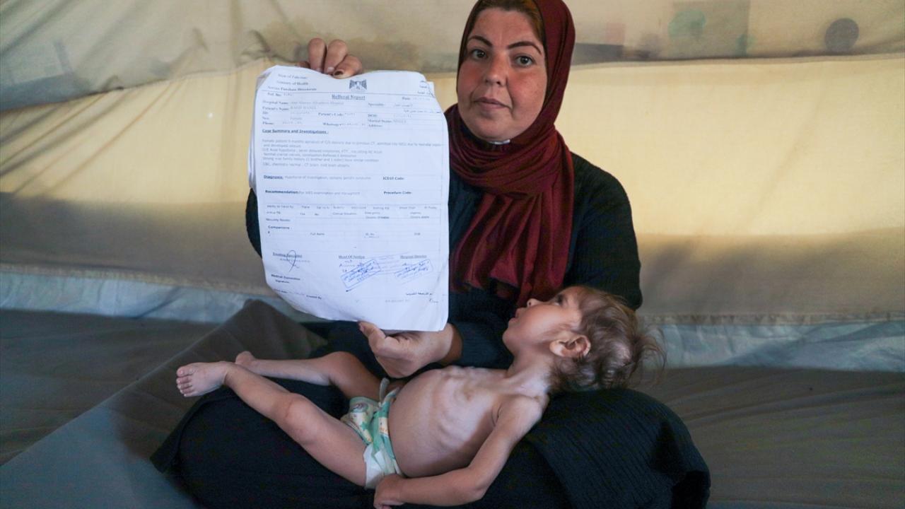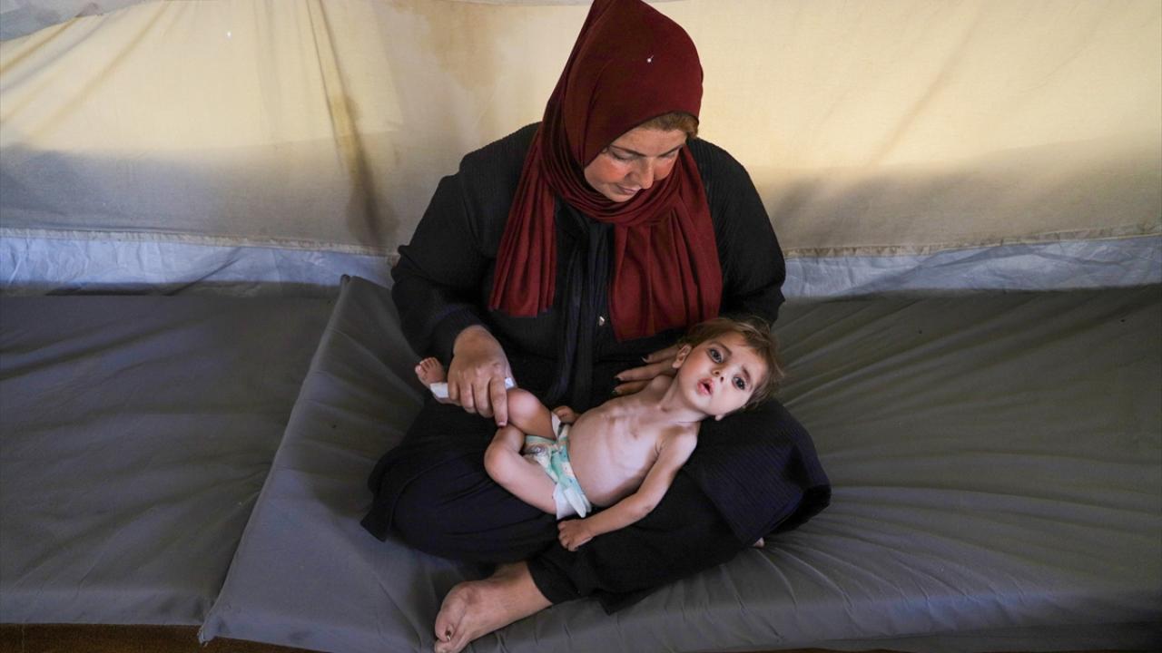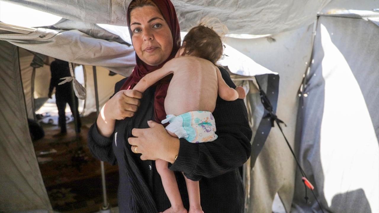 Gazze Şeridi’nin orta kesimindeki Zevayide bölgesinde derme çatma bir çadırda ailesiyle yaşayan 1,5 yaşındaki Filistinli Rital Raid Haniyye, gıda ve tıbbi tedaviye erişimdeki yetersizlik nedeniyle şiddetli yetersiz beslenme sorunu yaşıyor.
