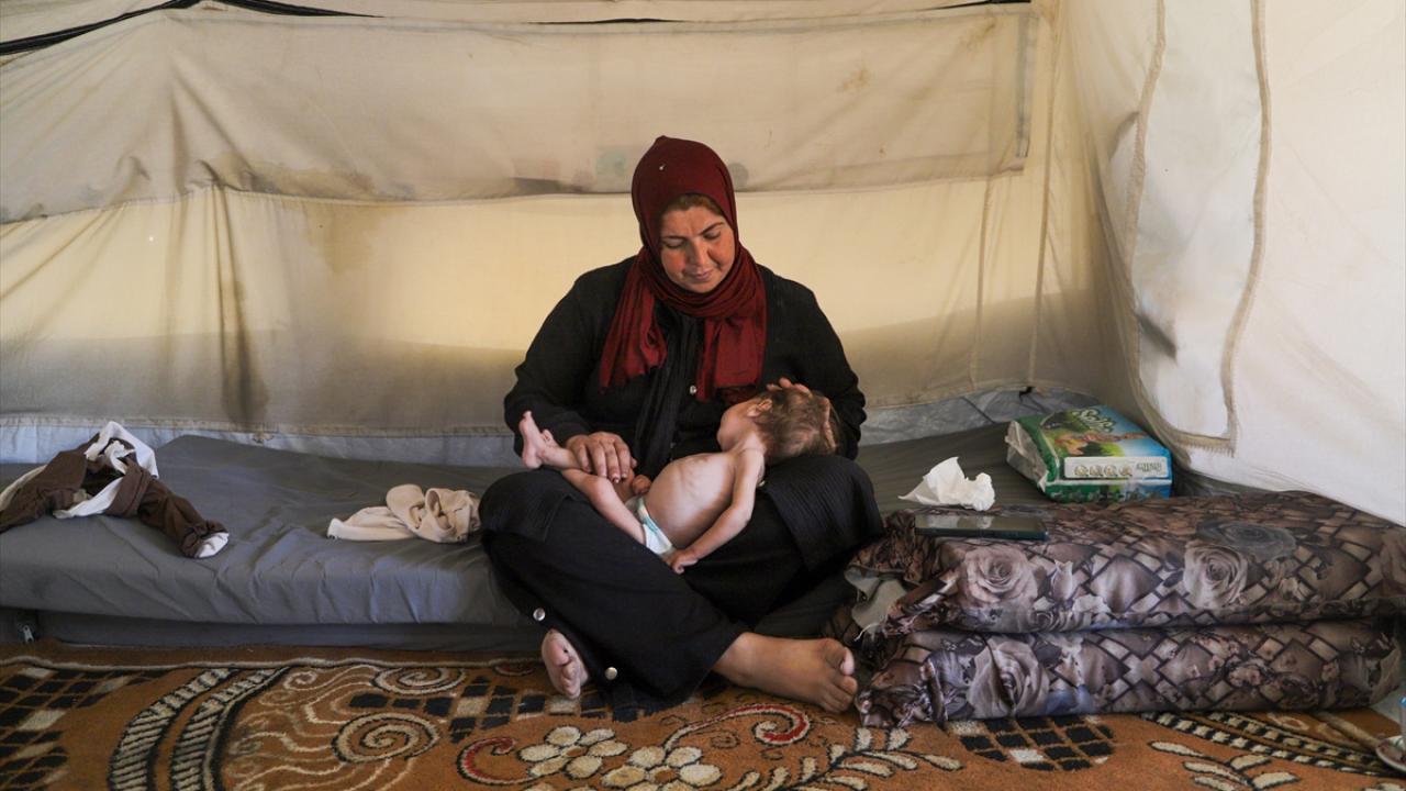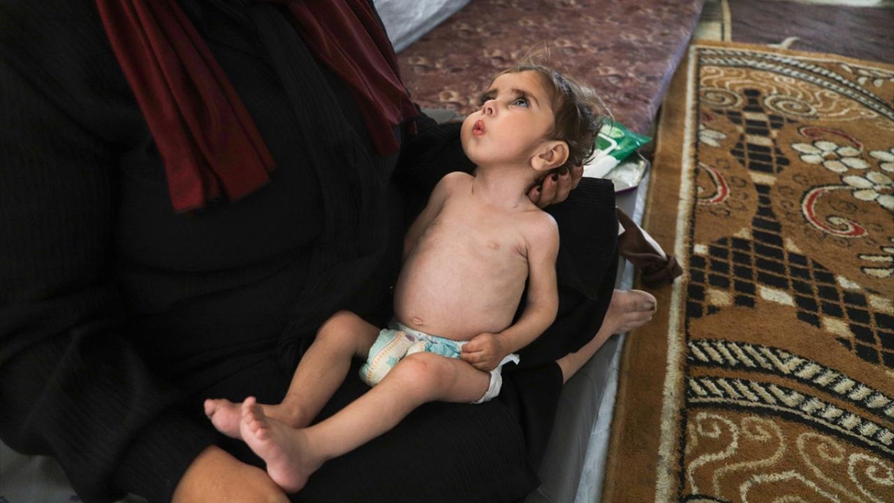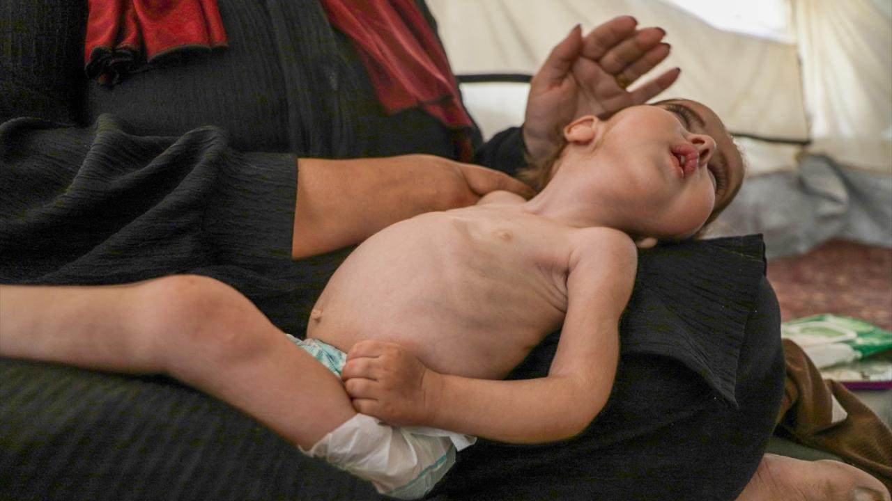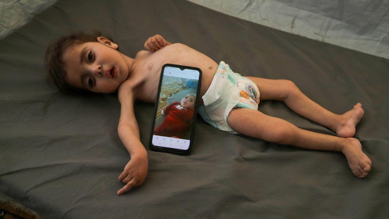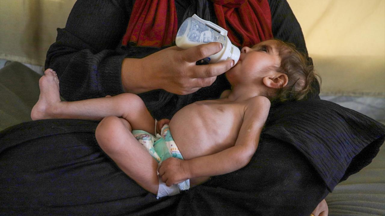 Gazze Şeridi’nin orta kesimindeki Zevayide bölgesinde derme çatma bir çadırda ailesiyle yaşayan 1,5 yaşındaki Filistinli Rital Raid Haniyye, gıda ve tıbbi tedaviye erişimdeki yetersizlik nedeniyle şiddetli yetersiz beslenme sorunu yaşıyor.