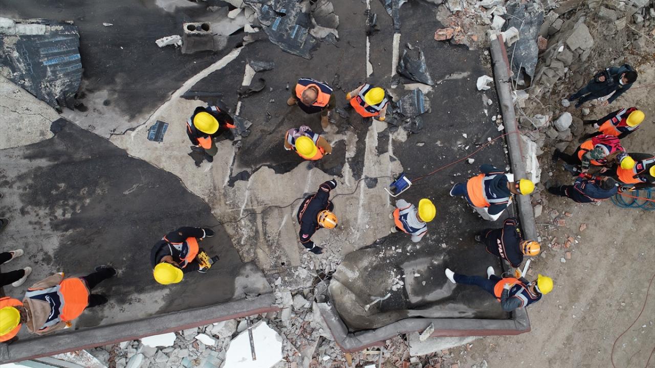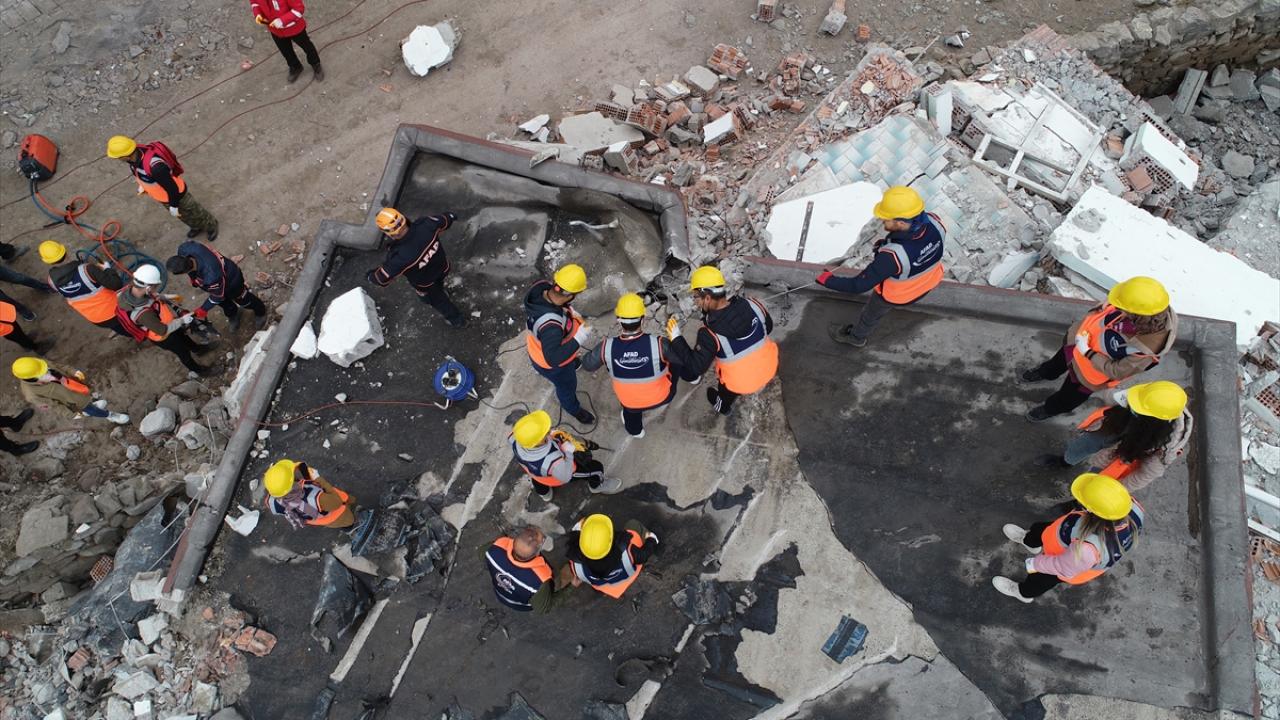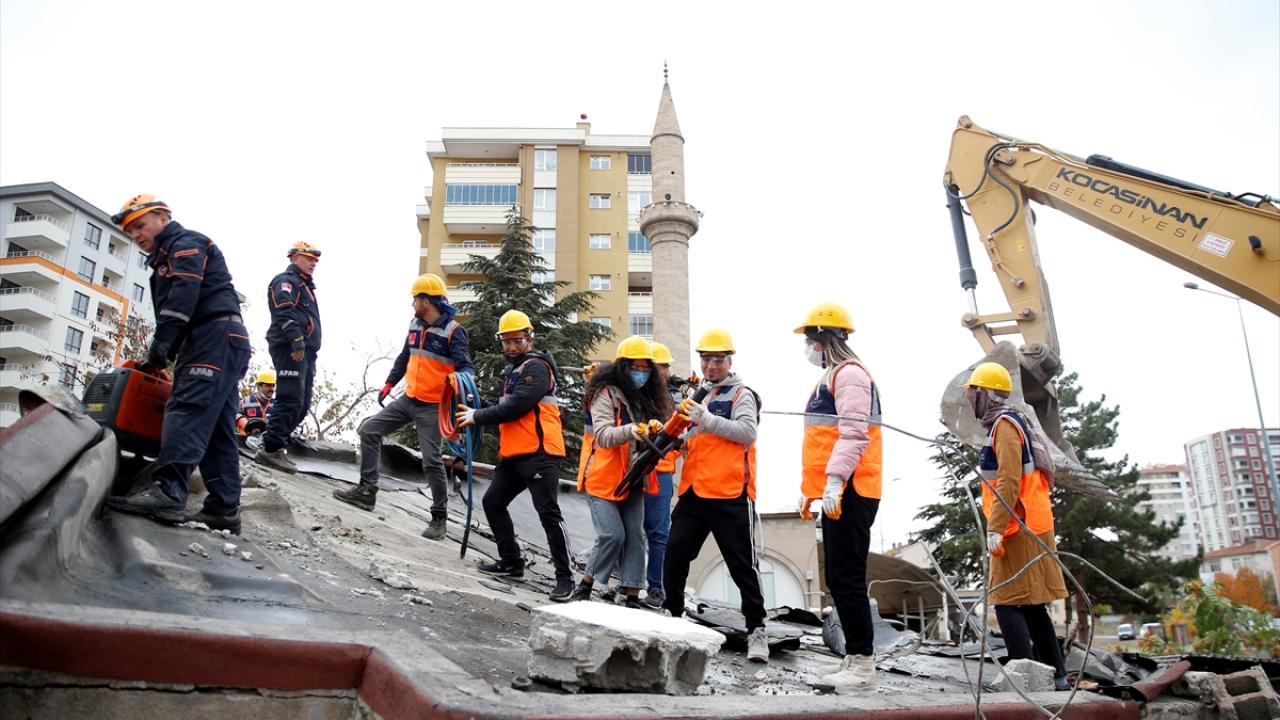 Yıkımın ardından AFAD ekipleri, enkazda kalanlara ulaşılması için kesici ve ayırıcı makinelerin nasıl kullanılması gerektiğini gönüllülere gösterdi.