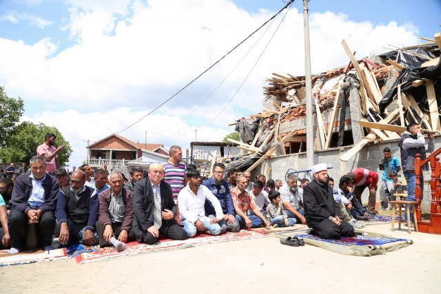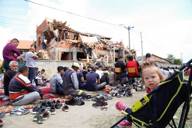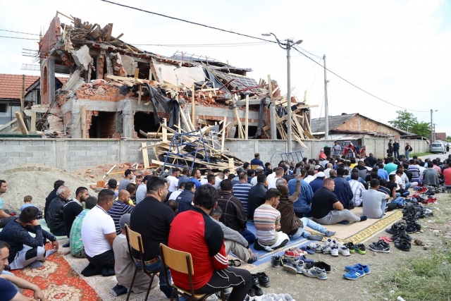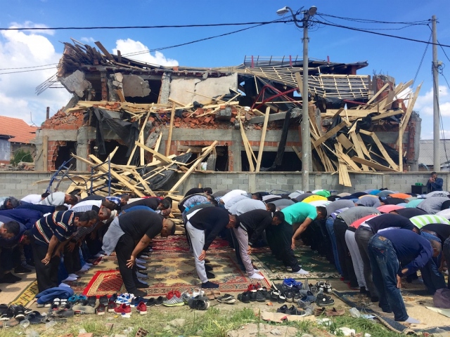 Sırbistan'ın başkenti Belgrad'a bağlı Zemun Polje'de, "inşaat izni olmadığı" gerekçesiyle Sırp makamlarınca bu sabah yıkılan mescidin önünde Cuma namazı kılındı. Civarda yaşayan yüzden fazla Müslüman, yıkılan mescidin hemen önündeki sokakta getirdikleri halılar üzerinde namaz kıldı.