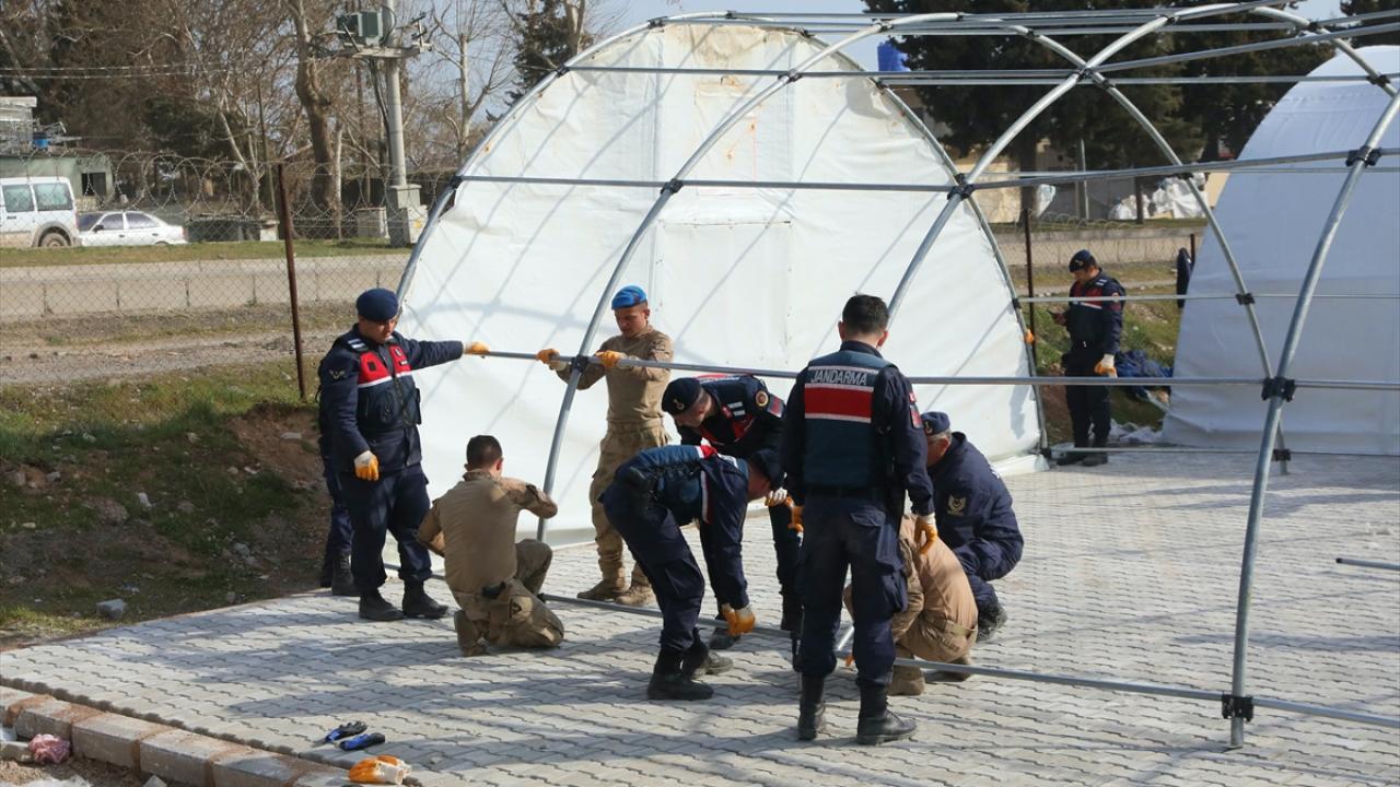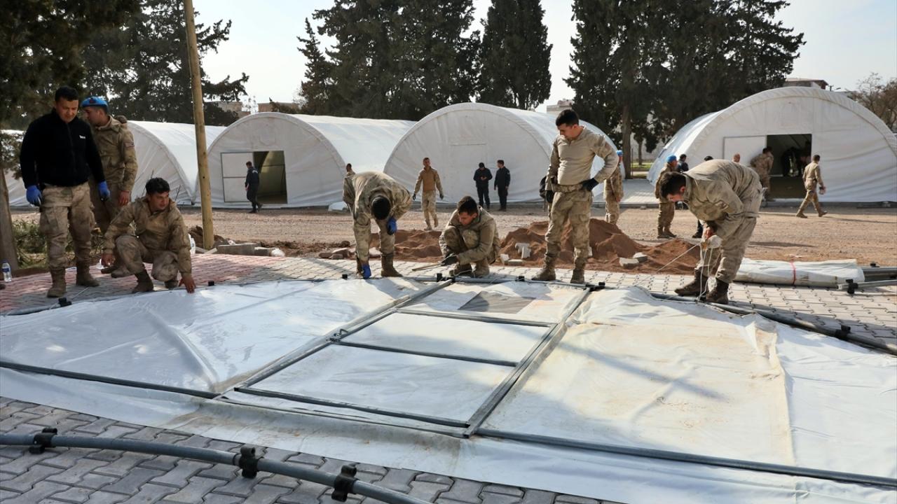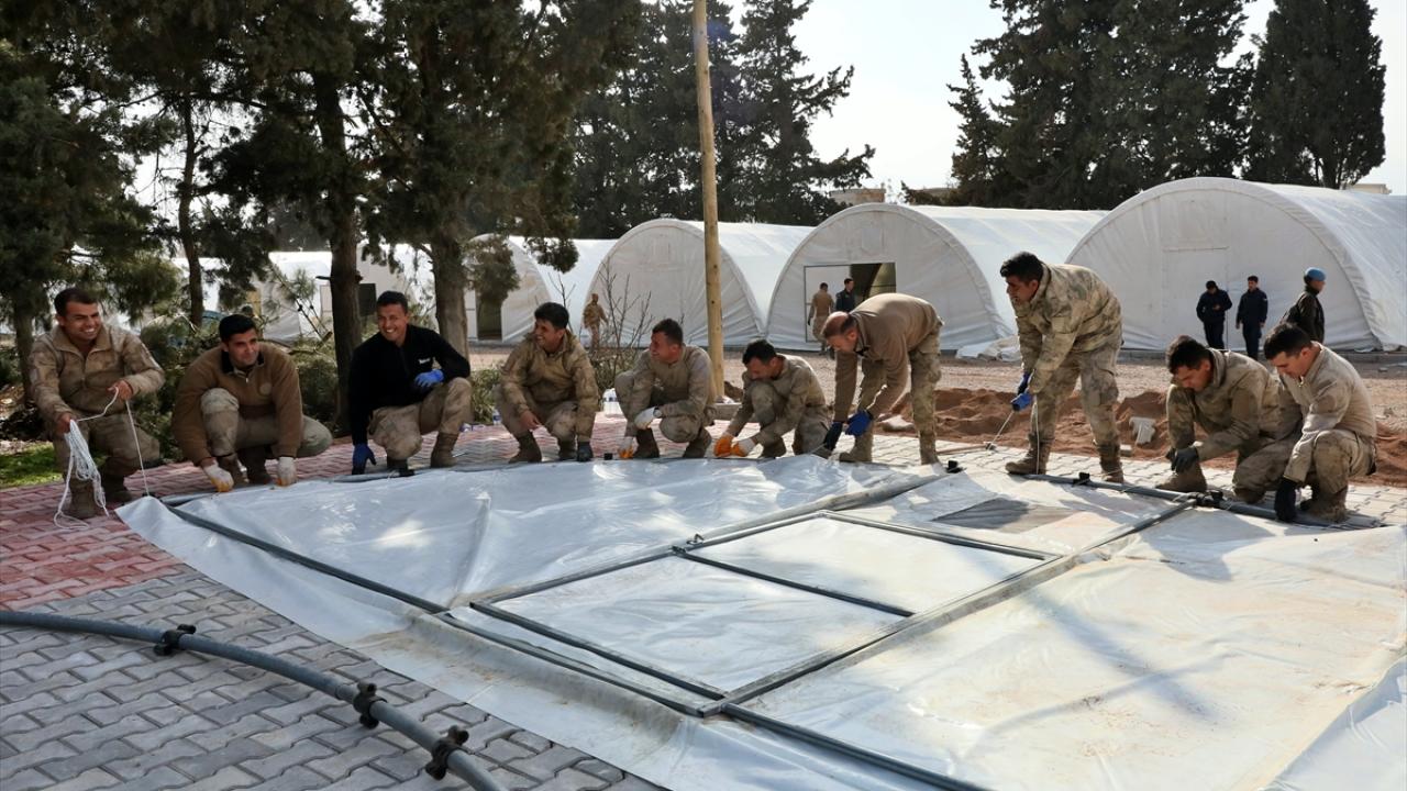 Mehmetçik, aynı mahalledeki yaklaşık 5 dönüm alana, 112 metrekare büyüklüğünde 28 çadırı 1 günde kurdu.